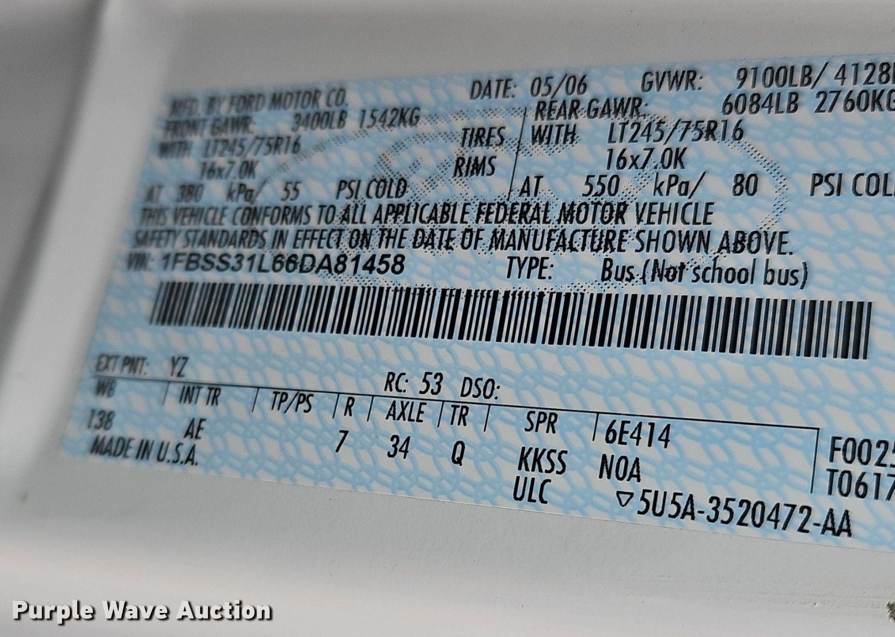 Purple Wave is selling a used Passenger Vehicle in Kansas. This item is a 2006 Ford E350 Super Duty XL van with the following: Miles: 47,929 on odometer, VIN: 1FBSS31L66DA81458, Unit #: 1105