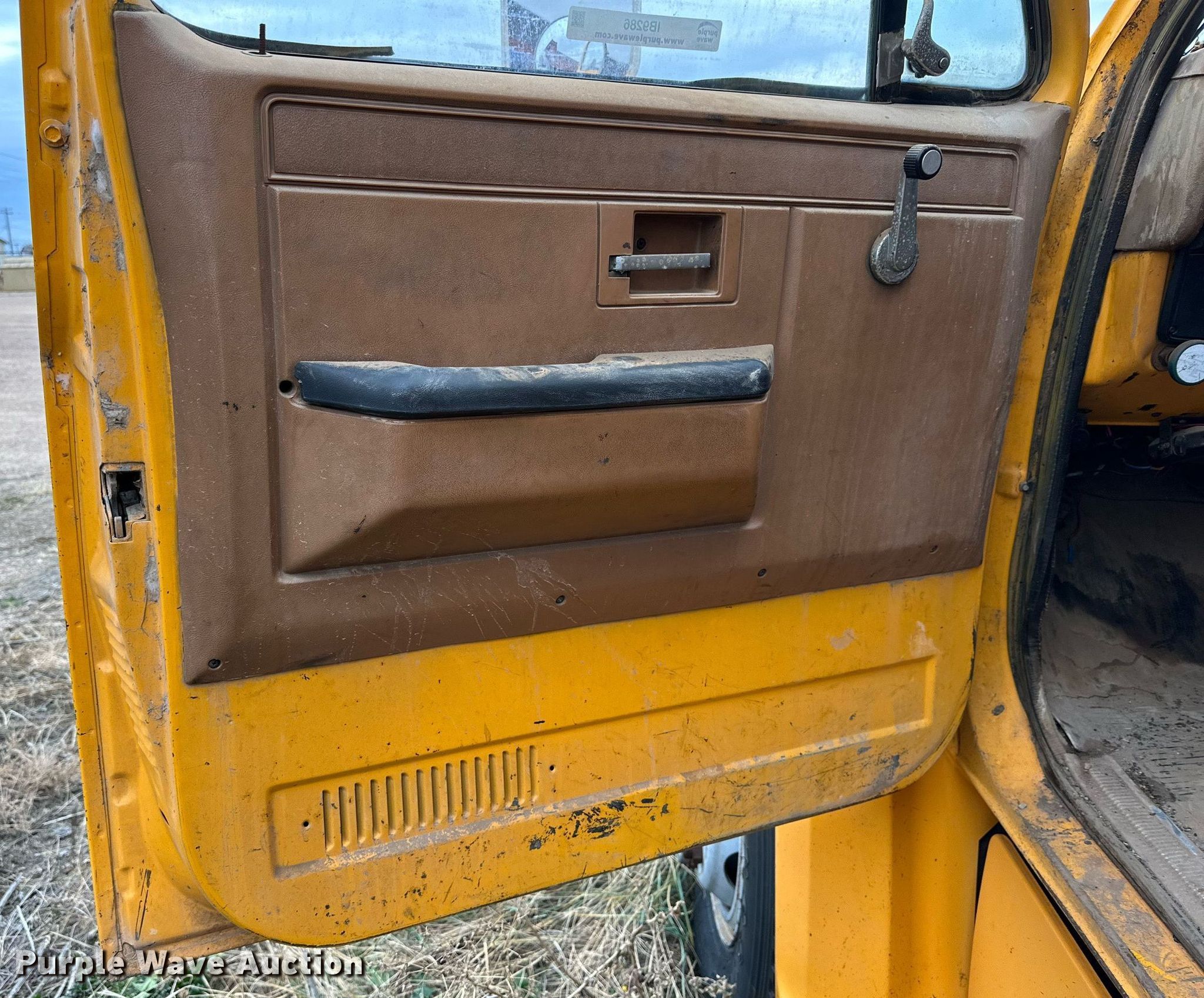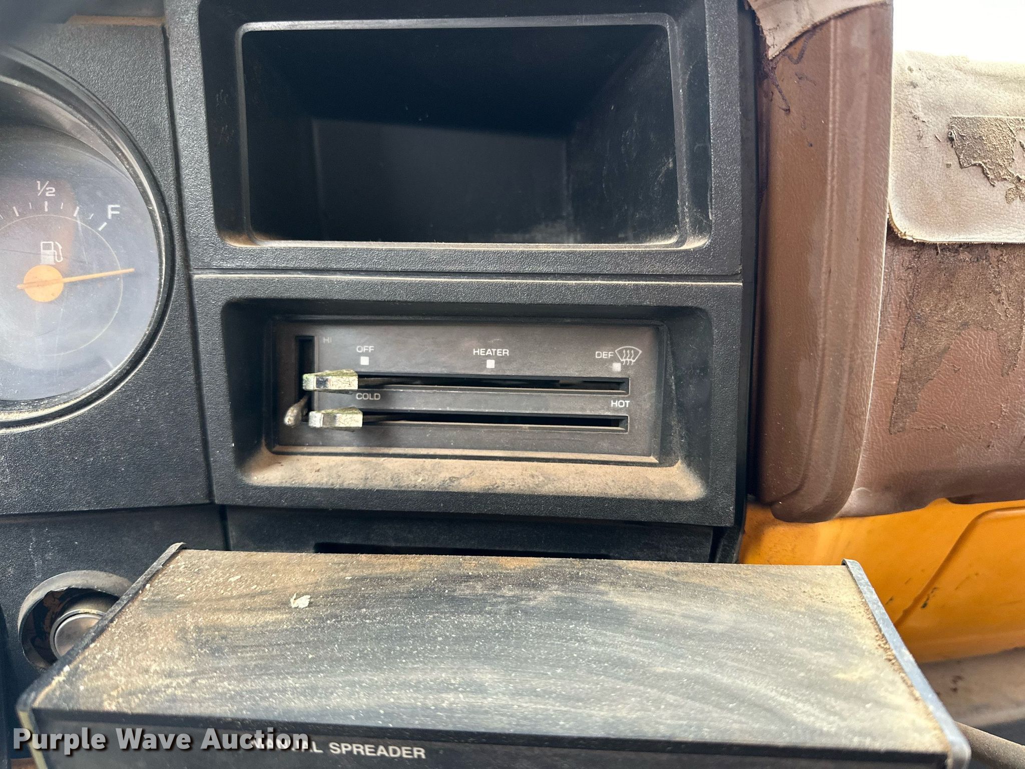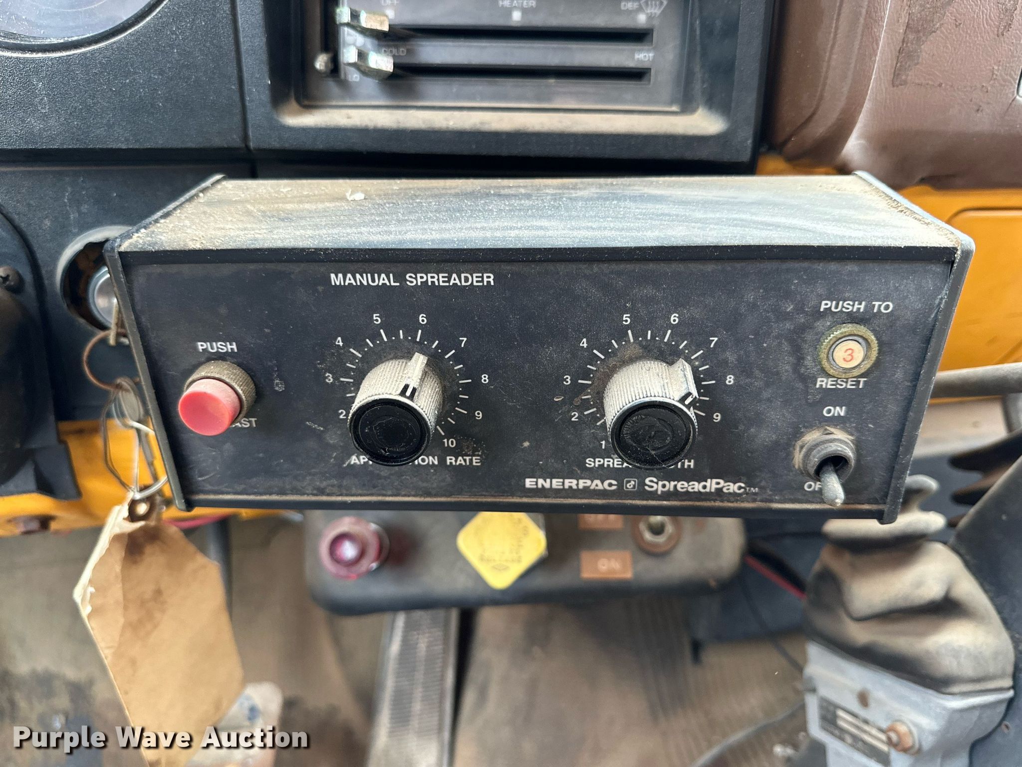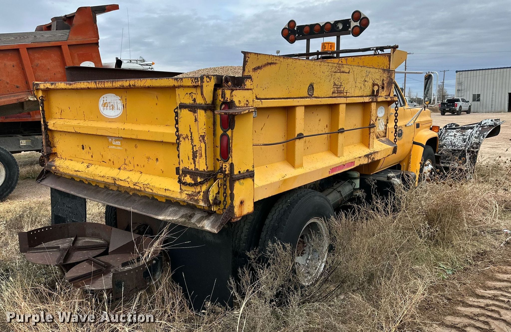 1988 Chevrolet C70 dump truck. Miles: 119,402 on odometer, VIN: 1GBM7D1B2JV104115. Engine Cylinders: 8, Fuel type: Gas. Transmission Automatic. Chassis Axles: Single, Suspension: Spring, Brakes: Air. Interior AC, Heat. Features Dump bed 10' L x 96" W, Side board height: 40", Bed type: Steel, Ram: Single , End gate: Manual, Spreader Spreadpac, Plow Width: 120". Tires Size: 10.00R20. Notes Non-operational unit. Texas title. Title distribution may be delayed up to 14 days from verification of funds. Hansford County, TX. 10478 County Road V. Spearman, TX 79081