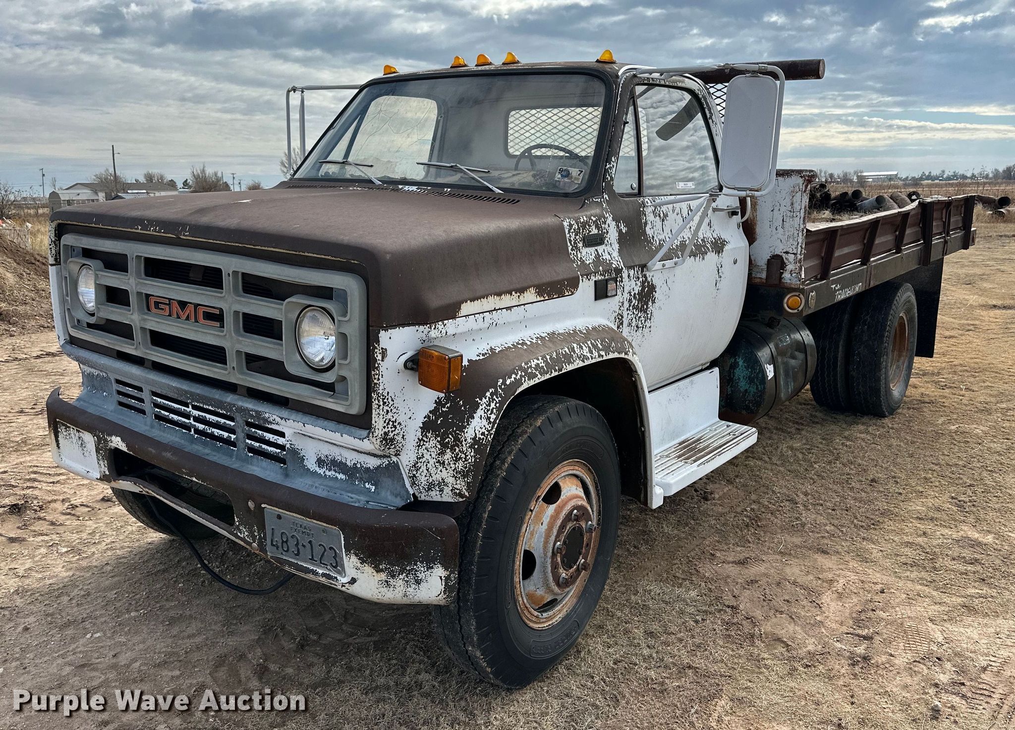 Purple Wave is selling a used Flat Bed Truck in Texas. This item is a 1986 GMC C6000 dump flatbed truck with the following: Miles: 64,615 on odometer, VIN: 1GDE6D1A5GV501297