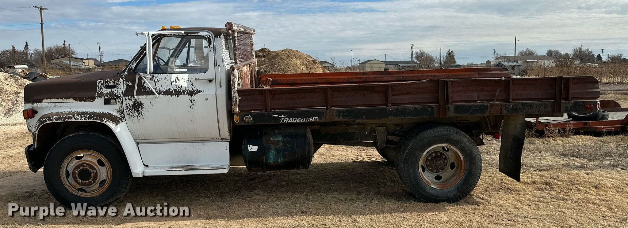 This 1986 GMC C6000 dump flatbed truck will sell to the highest bidder regardless of price.