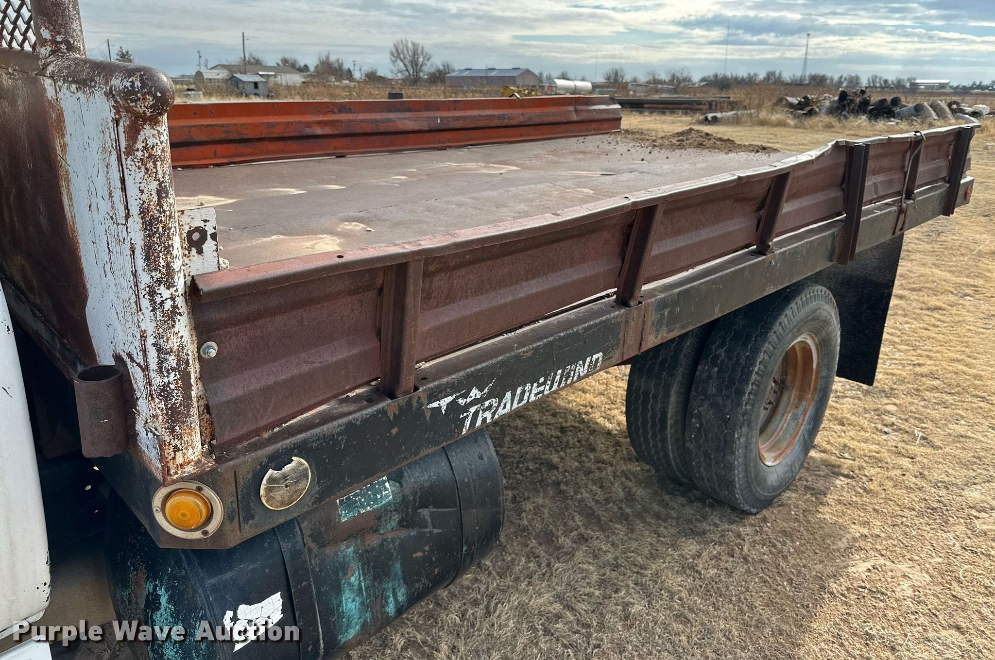 1986 GMC C6000 dump flatbed truck. Miles: 64,615 on odometer, VIN: 1GDE6D1A5GV501297. Engine Displacement: 5.7L, Cylinders: 8, Fuel type: Gas. Transmission Manual, Speed: 8, plus 2. Chassis Axles: Single, Suspension: Spring, Brakes: Hydraulic, PTO. Interior AC, Heat. Features Dump flatbed Tradewind, 14' 6" L x 96" W, Removable sides. Tires Size: 9.00-20. Notes Non-operational unit. Texas title. Title distribution may be delayed up to 14 days from verification of funds. Hansford County, TX. 10478 County Road V. Spearman, TX 79081