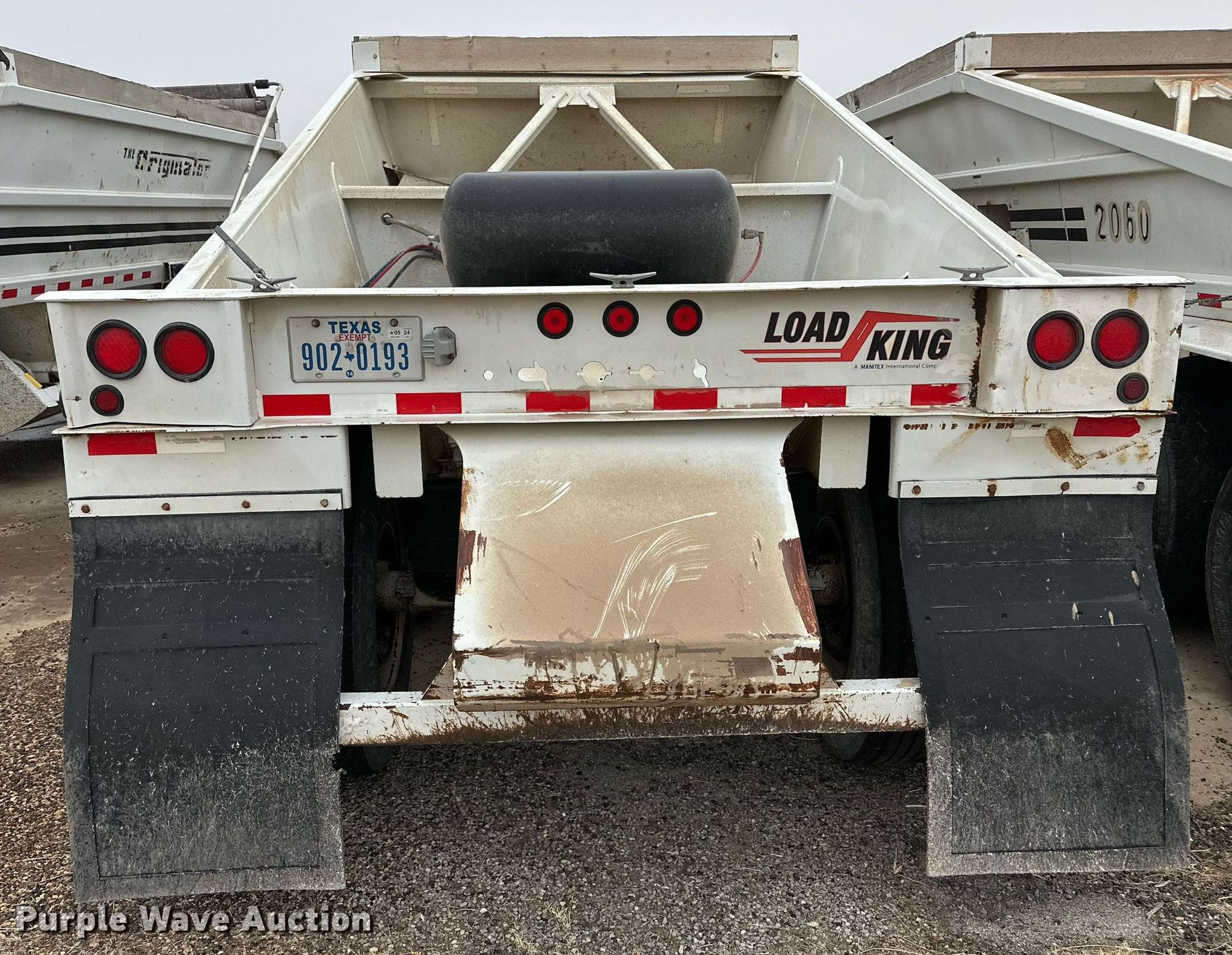 2013 Load King bottom dump trailer. VIN: 5LKD4023XD1028631. Dimensions Overall: 42' L x 102" W. Features Body type: Steel, Clamshell gate: Air operated, Trailer controls, Rear push block, Roll tarp. Chassis Landing gear: Dual, Suspension: Air, Brakes: Air, Axles: Tandem. Tires Steel wheels, Size: 11R24.5. Texas title. Title distribution may be delayed up to 14 days from verification of funds. Ochiltree County, TX. 301 N Main St. Perryton, TX 79070