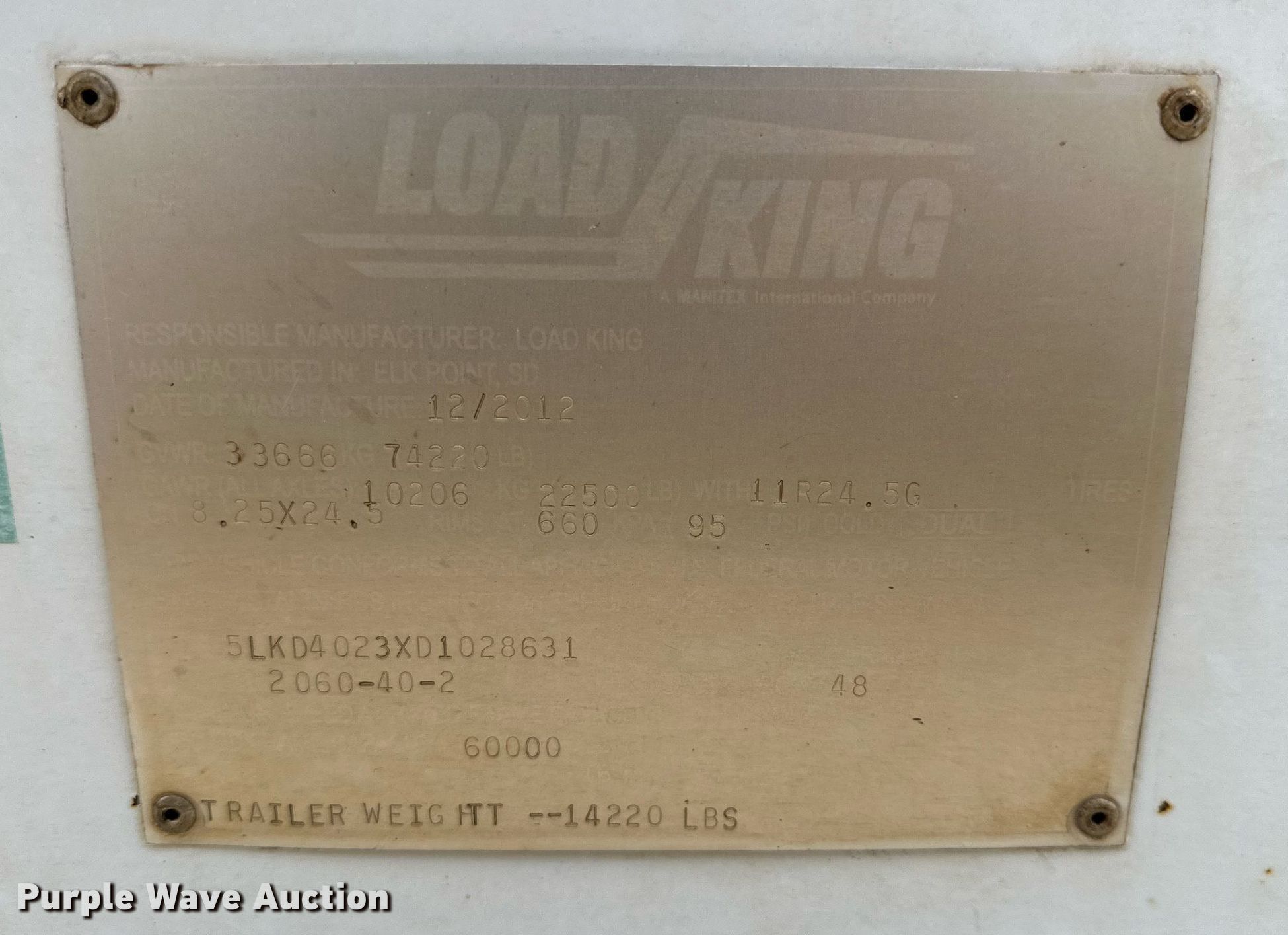 Purple Wave is selling a used Bottom Dump Trailer in Texas. This item is a 2013 Load King bottom dump trailer with the following: VIN: 5LKD4023XD1028631