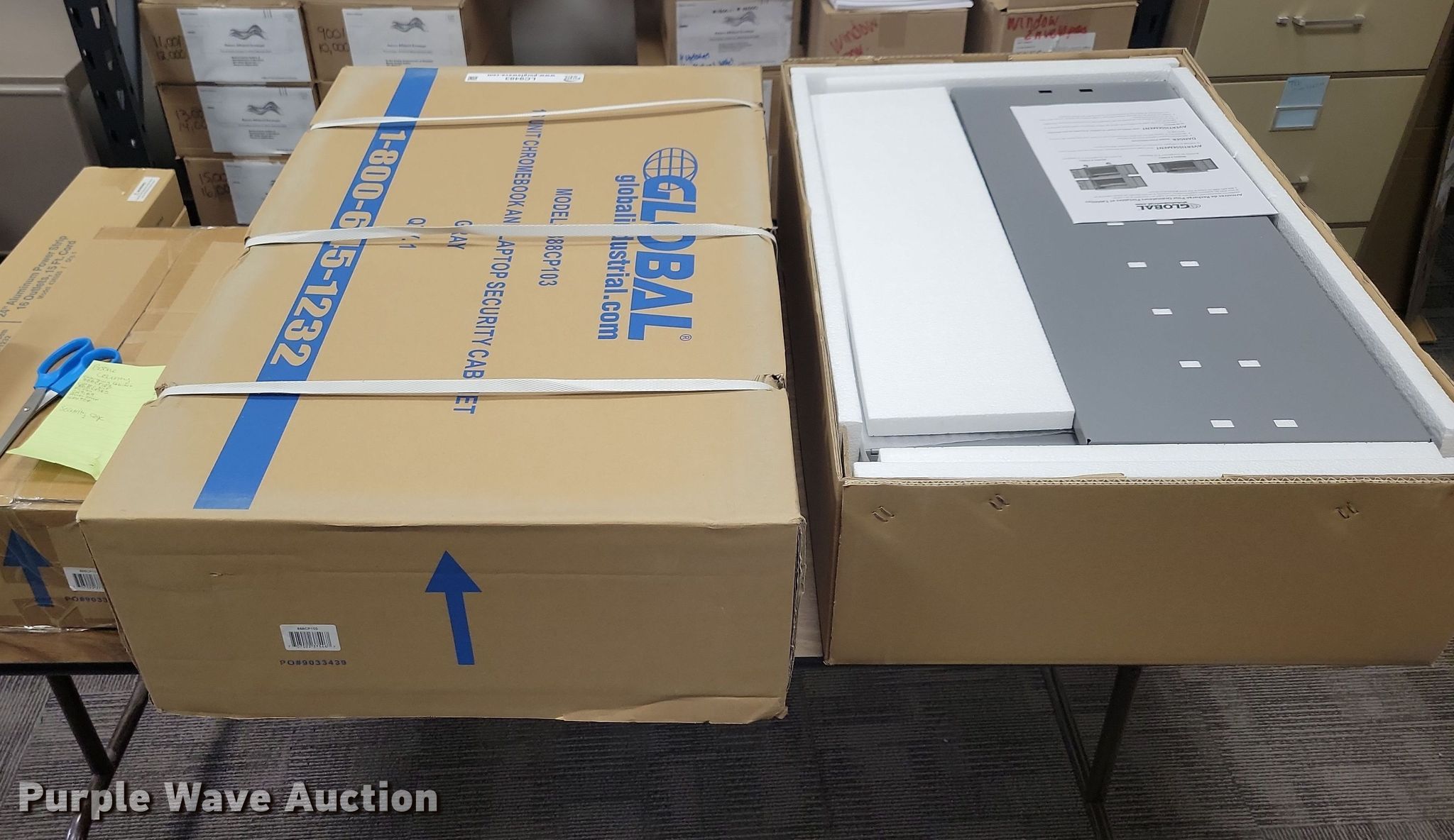 Purple Wave is selling a used Office Supplies and Equip. in Iowa. This item is a (2) Global 888CP103 security cabinets with the following: Unused