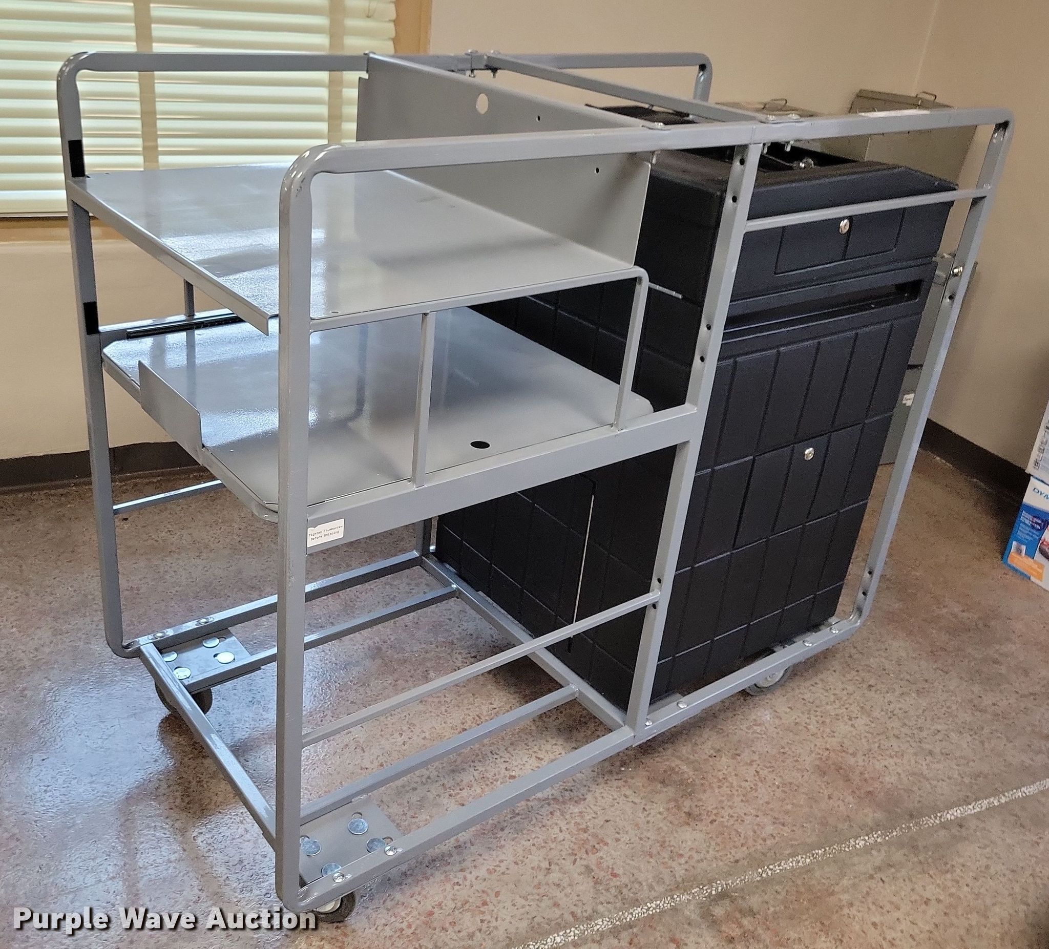 Purple Wave is selling a used Office Supplies and Equip. in Iowa. This item is a (18) ballot box carts with the following: Ballot box included