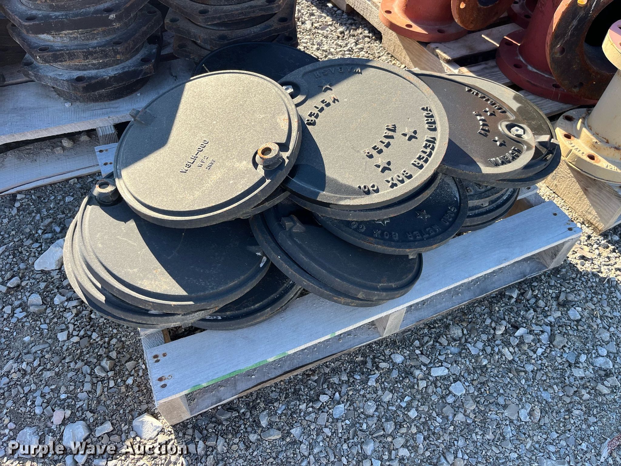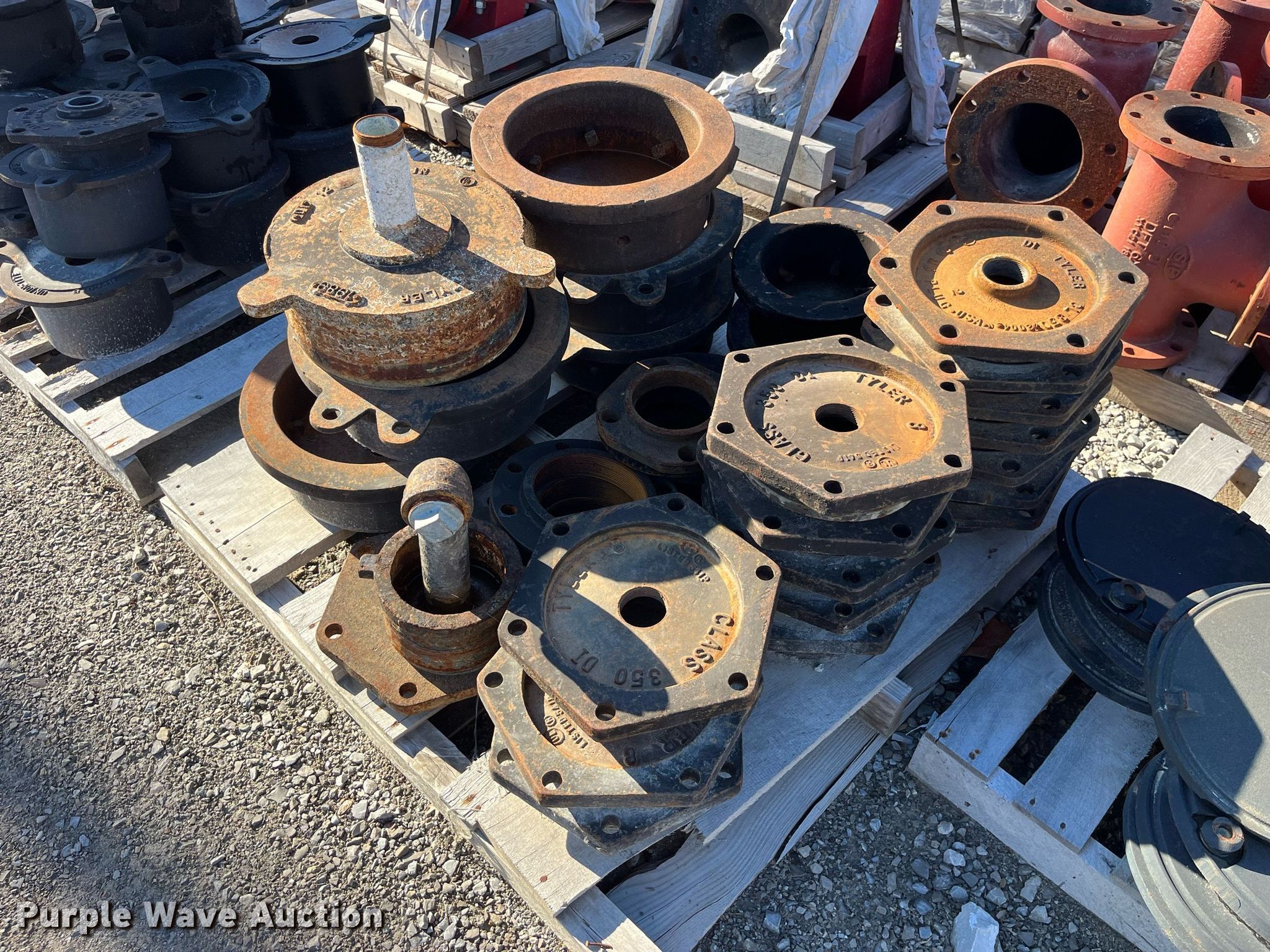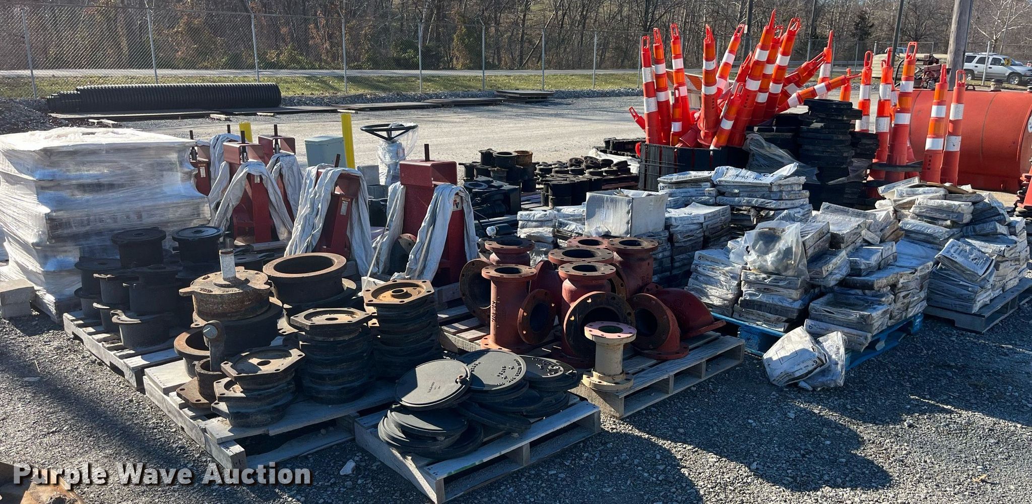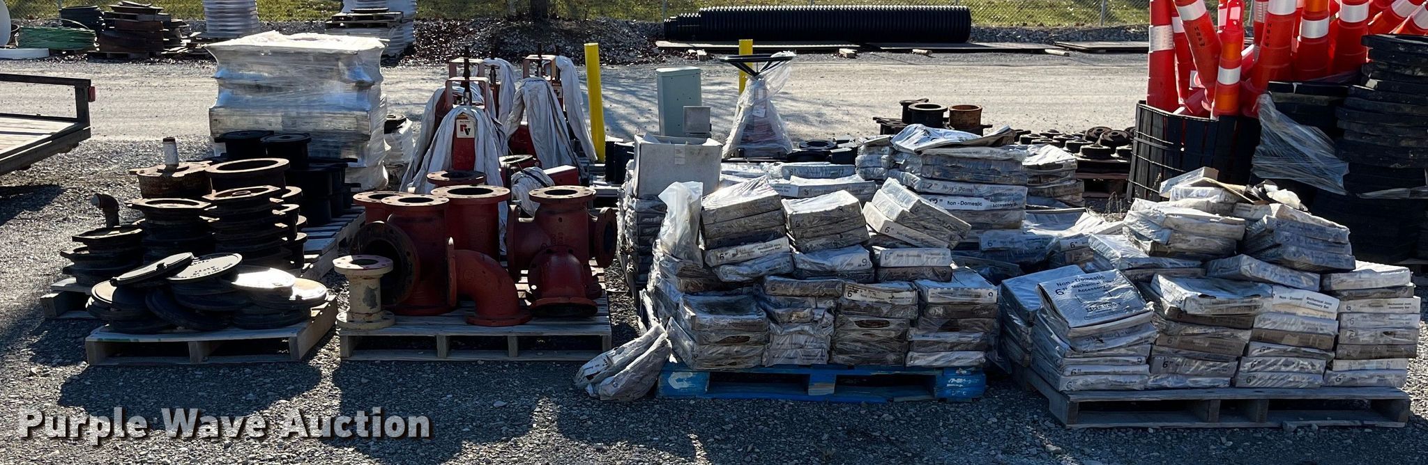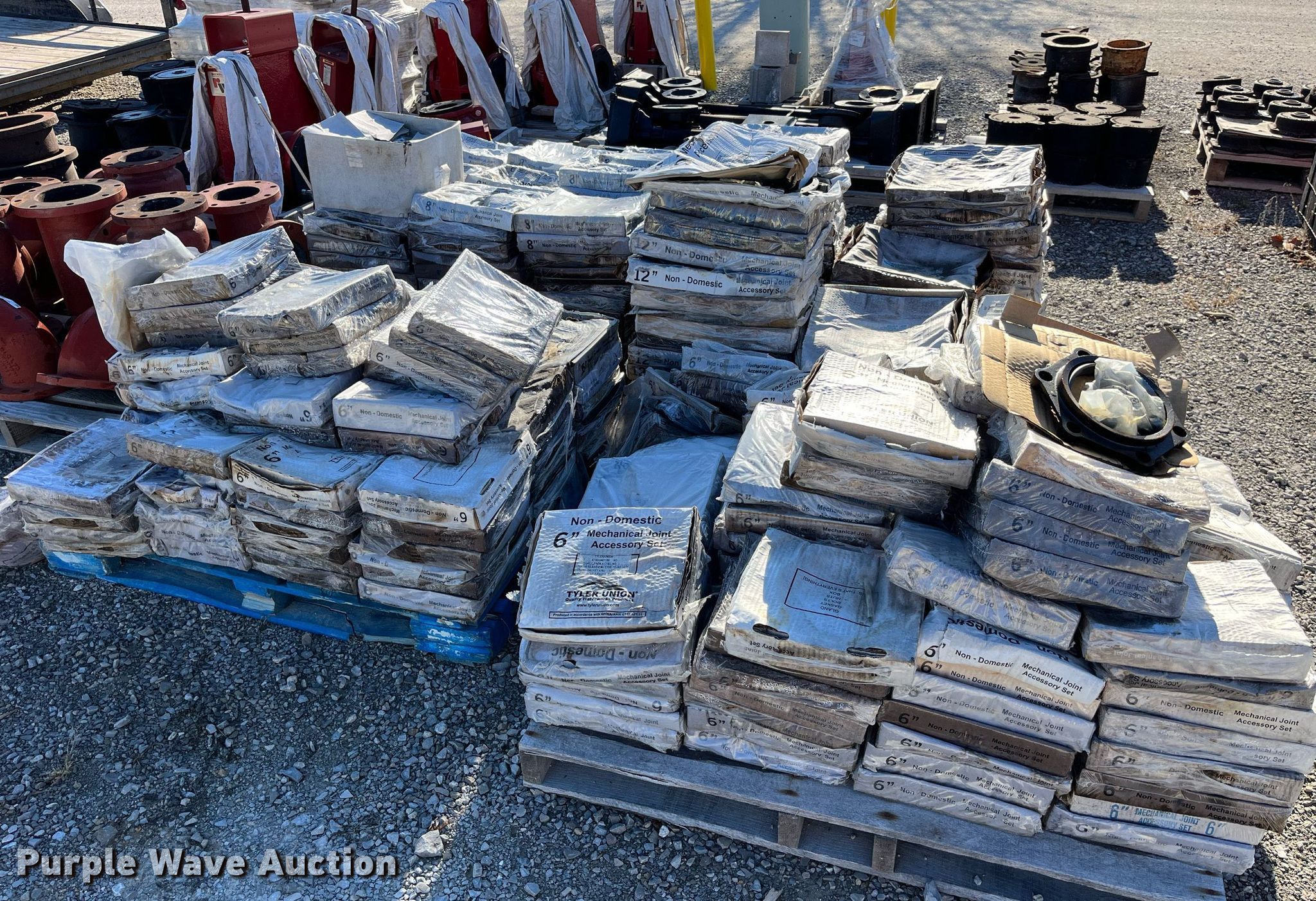 Purple Wave is selling a used Building Materials in Missouri. This item is a Water line parts with the following: Gland packs, Ford meter lids, Bell blowoffs, Control valves, Traffic cones not included