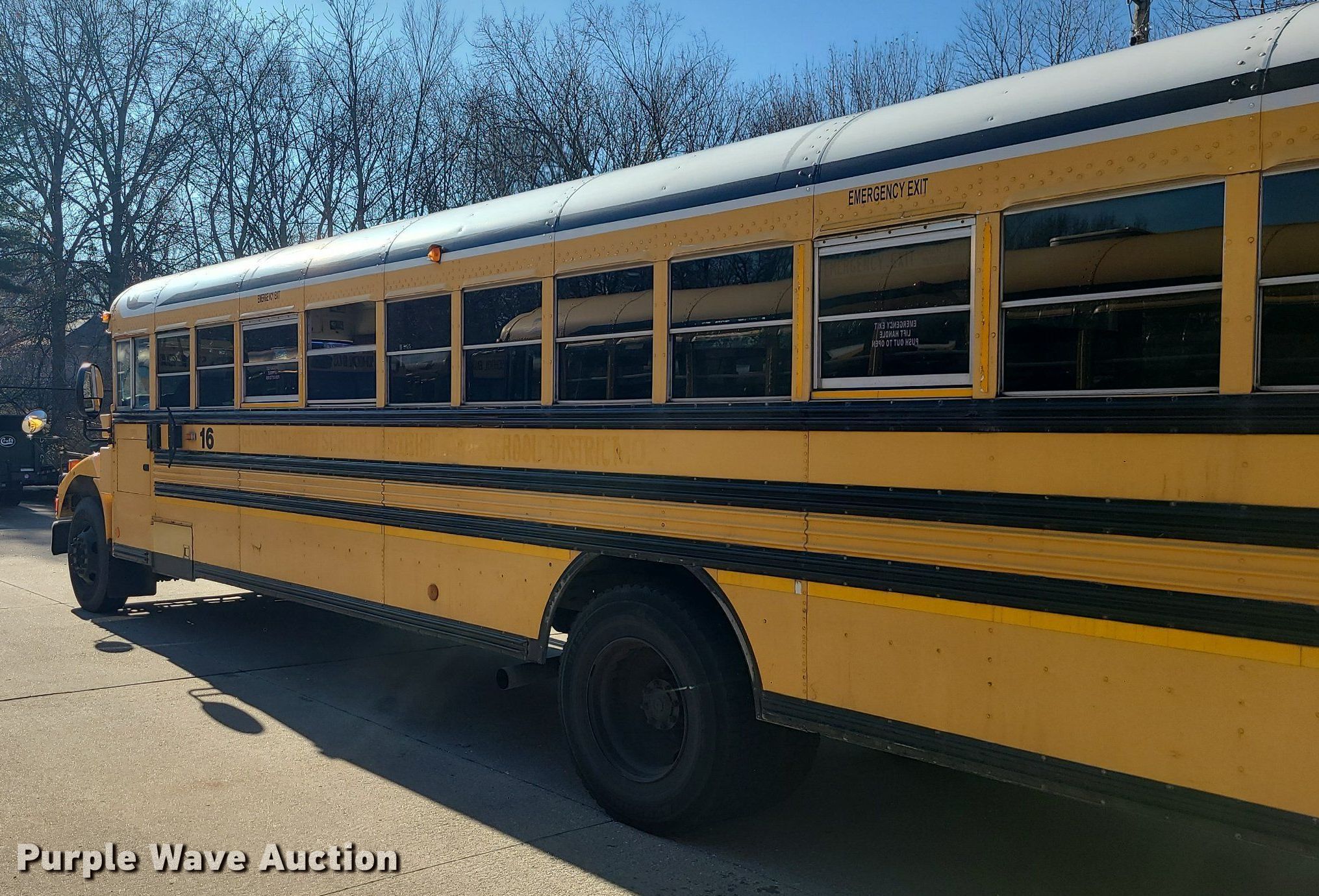 2005 Blue Bird Vision school bus. Miles: 208,451 on odometer, VIN: 1BAKGCKHX5F219698. Engine Displacement: 7.2L, Cylinders: 6, Fuel type: Diesel. Transmission Automatic. Chassis Axles: Single, Suspension: Spring, Brakes: Hydraulic. Interior Heat, Cruise control. Tires Front: 295/75R22.5, Rear: 11R22.5. Notes Dash warning indicator: ABS. Missouri title. Title distribution may be delayed up to 14 days from verification of funds. 13208 Park Hill Dr. Grandview, MO 64030