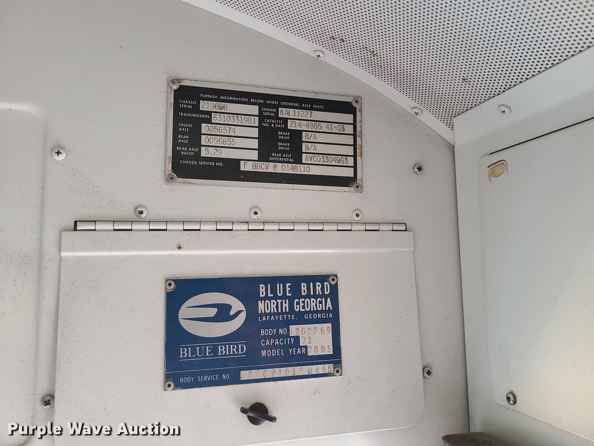 Take a look at this used 2005 Blue Bird Vision school bus being sold on January 23rd, 2024 in the SOLD! January 23 Government Auction made by Blue Bird. Take a look at all of the item information below or take a look at similar auctions for Transit Vehicles.
