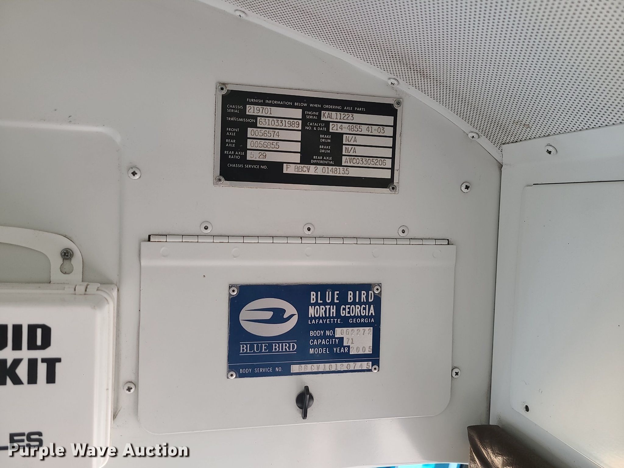 Take a look at this used 2005 Blue Bird Vision school bus being sold on January 23rd, 2024 in the SOLD! January 23 Government Auction made by Blue Bird. Take a look at all of the item information below or take a look at similar auctions for Transit Vehicles.