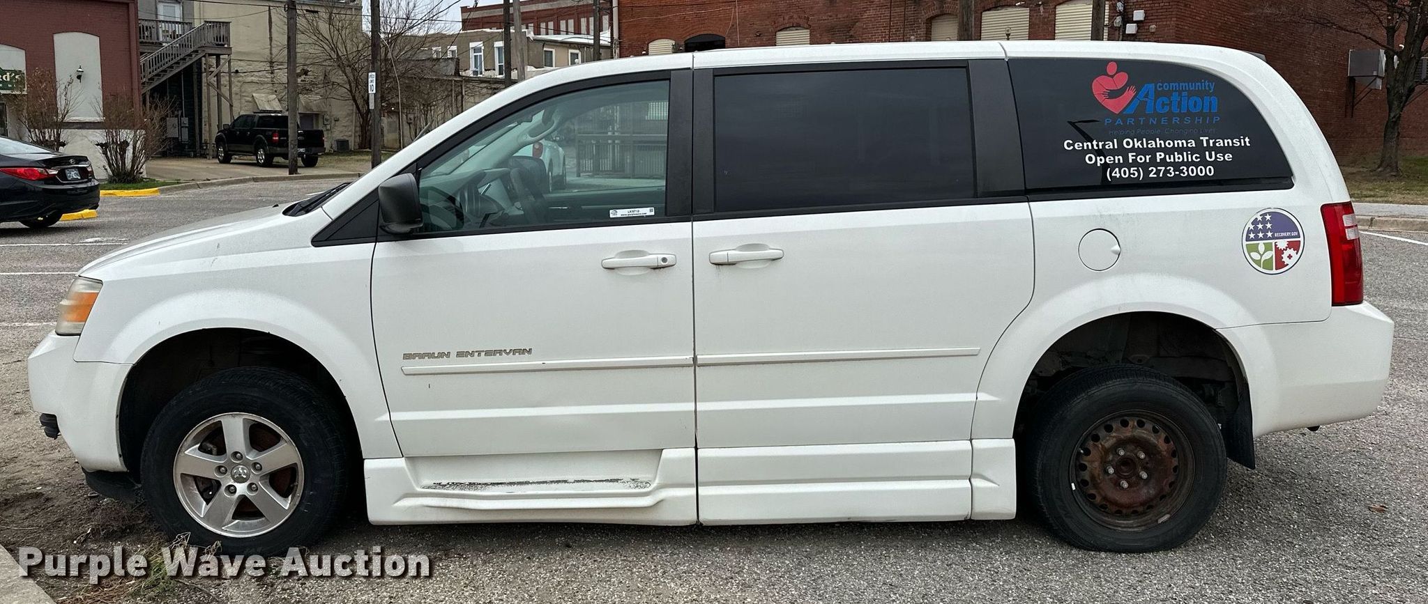 2010 Dodge Grand Caravan handicap accessible van. Miles: 307,753 on odometer, VIN: 2D4RN4DE1AR296730. Engine Displacement: 3.3L V6 OHV, Cylinders: 6, Fuel type: Gas. Transmission Automatic. Interior AC, Heat, Heated mirrors, Power windows, Power locks, Cruise control. Features Wheel chair ramp. Tires Size: 225/65R16. Notes Dash warning indicator: TPMS, Engine issues, will not stay running, Possible electrical issues, Non-operational gear shifter, Non-operational driver door panel, Non-operational windows, Low tires, Non-operational unit. Oklahoma title. Title distribution may be delayed up to 14 days from verification of funds. Central Oklahoma Community Action Agency Inc.. 131 N Bell Street. Shawnee, OK 74801