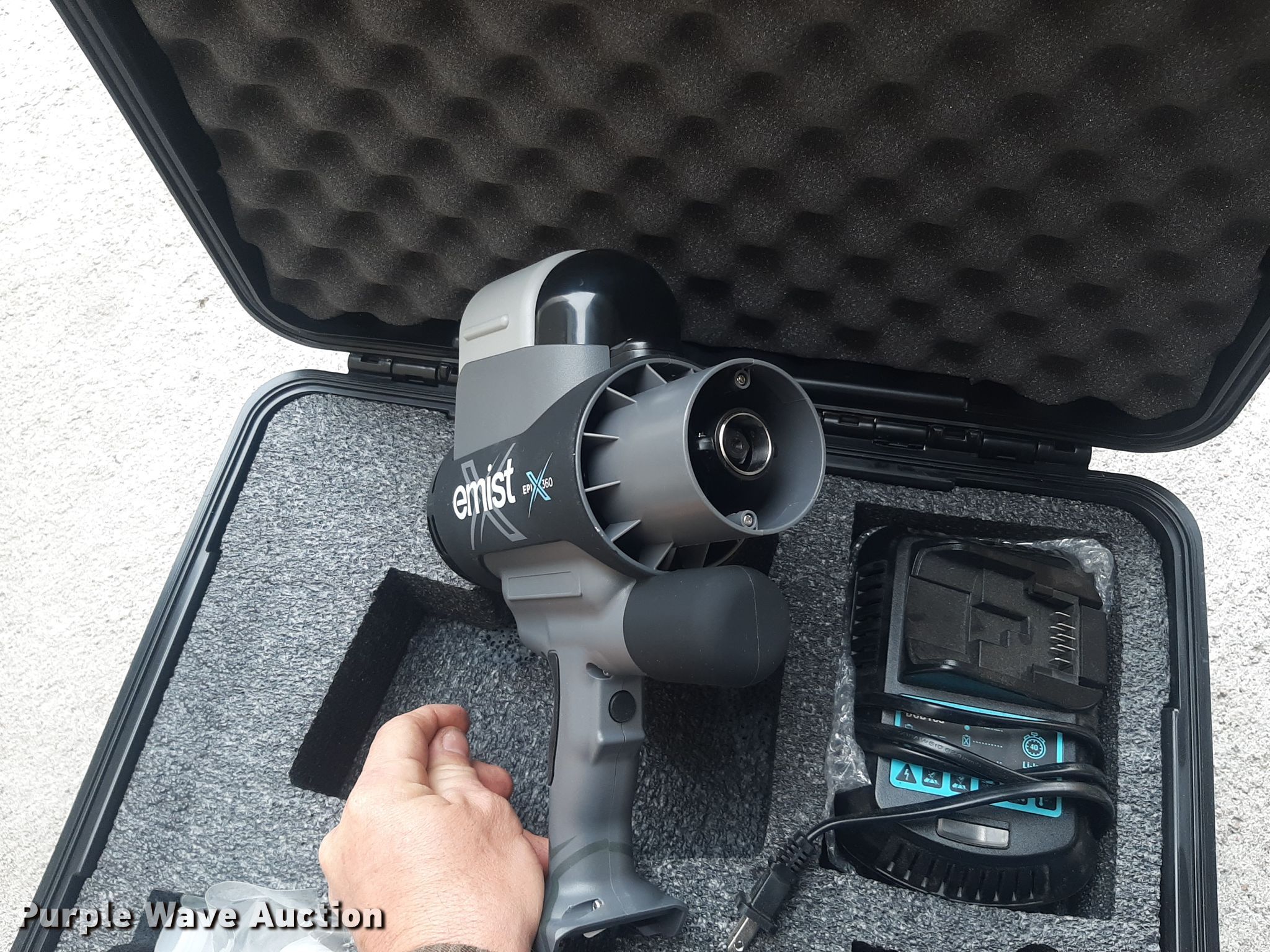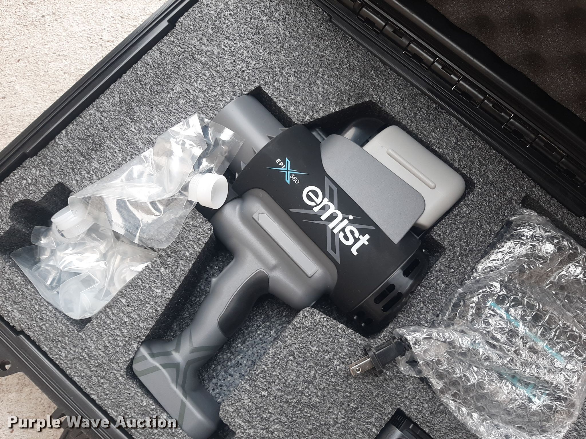 Purple Wave is selling a used All Other Household Items in Kansas. This item is a E-Mist EPI 360 disinfectant sprayer with the following: (2) batteries, Charger