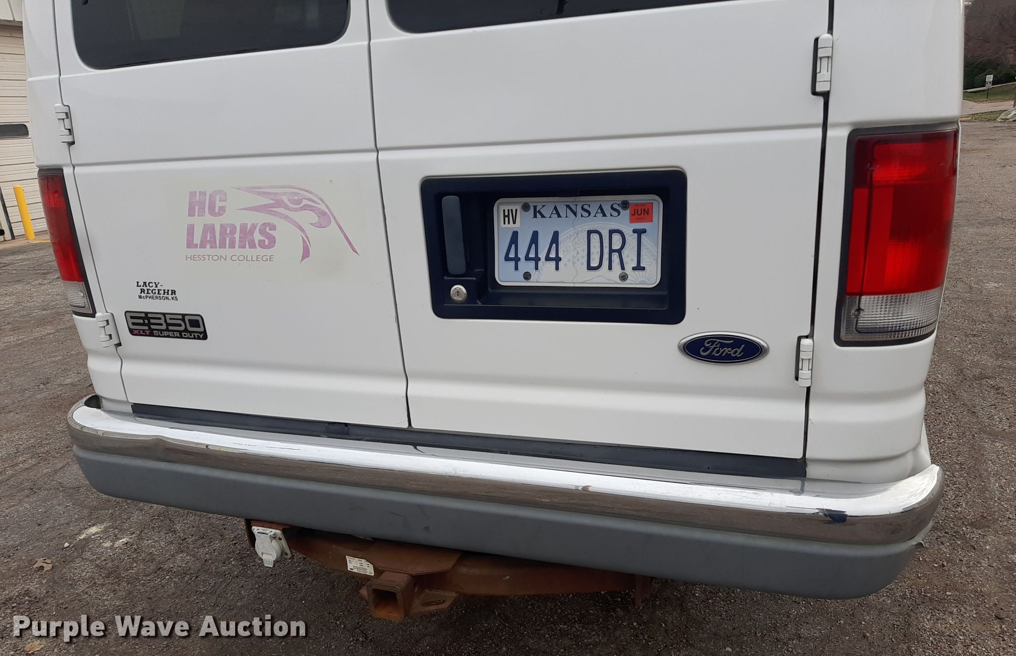 2000 Ford E350 van. Miles: 152,021 on odometer, VIN: 1FBSS31L8YHA34928. Engine Displacement: 5.4L V8 SOHC, Cylinders: 8, Fuel type: Gas. Transmission Automatic. Interior AC, Heat, Power windows, Power locks, Cruise control. Tires Size: 245/75R16. Kansas title. Title distribution may be delayed up to 30 days from verification of funds. Hesston College. 325 South College Drive. Hesston, KS 67062