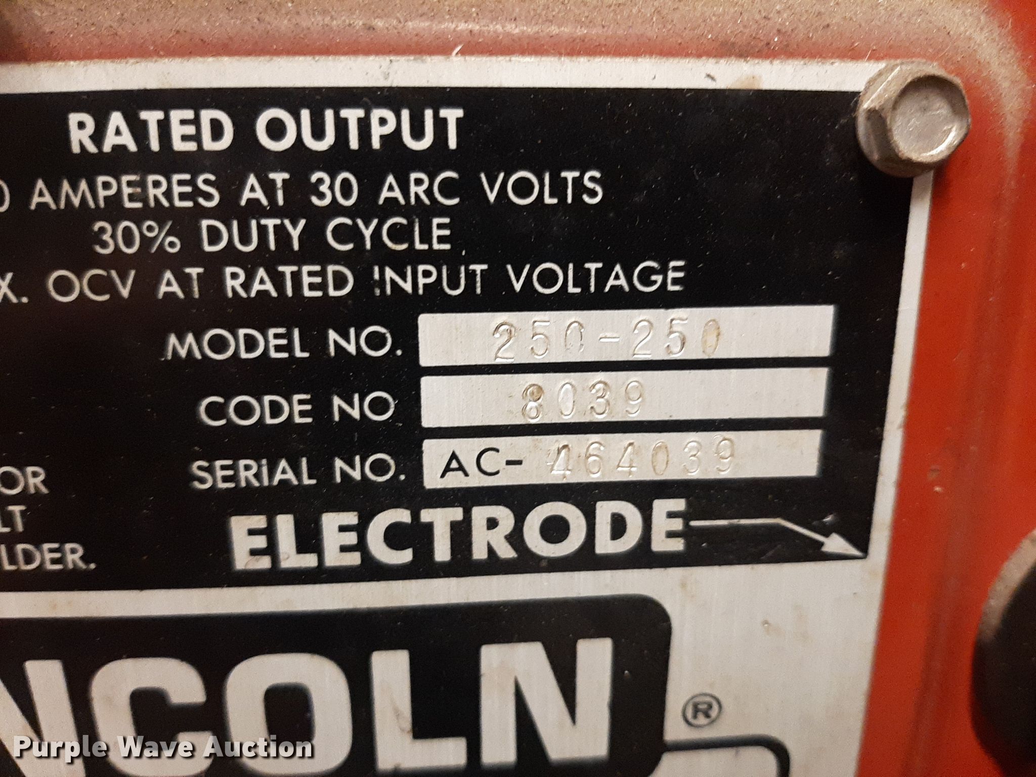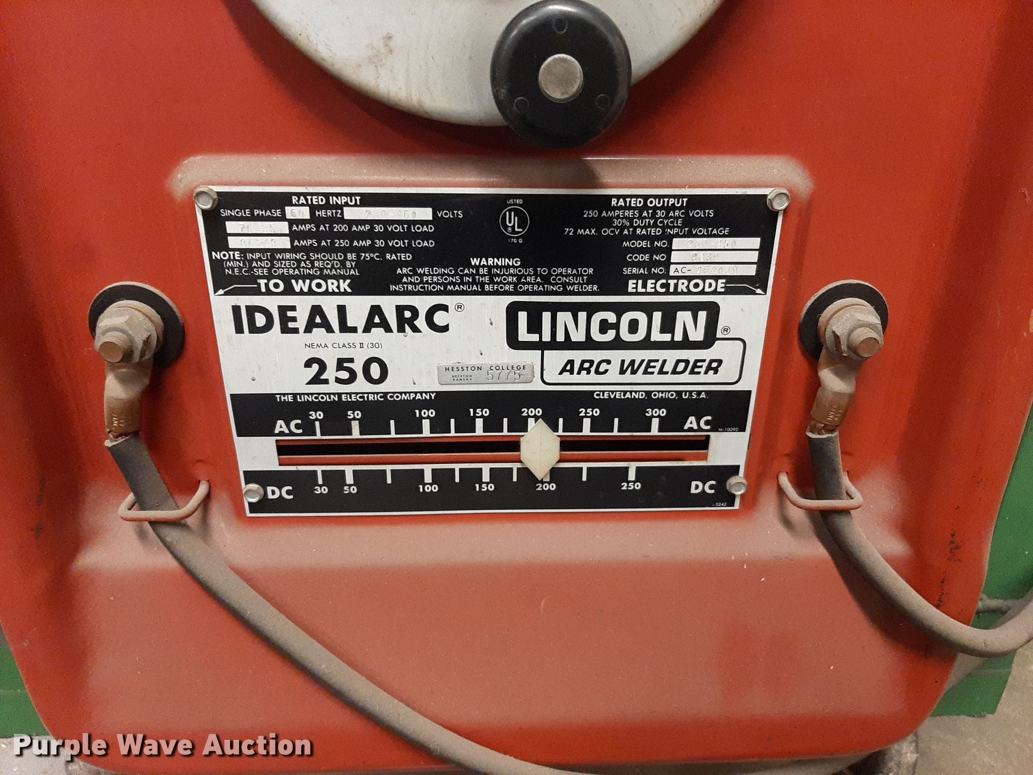 Purple Wave is selling a used Welder (Manual) in Kansas. This item is a Lincoln Idealarc 250 welder with the following: Serial: AC-464039