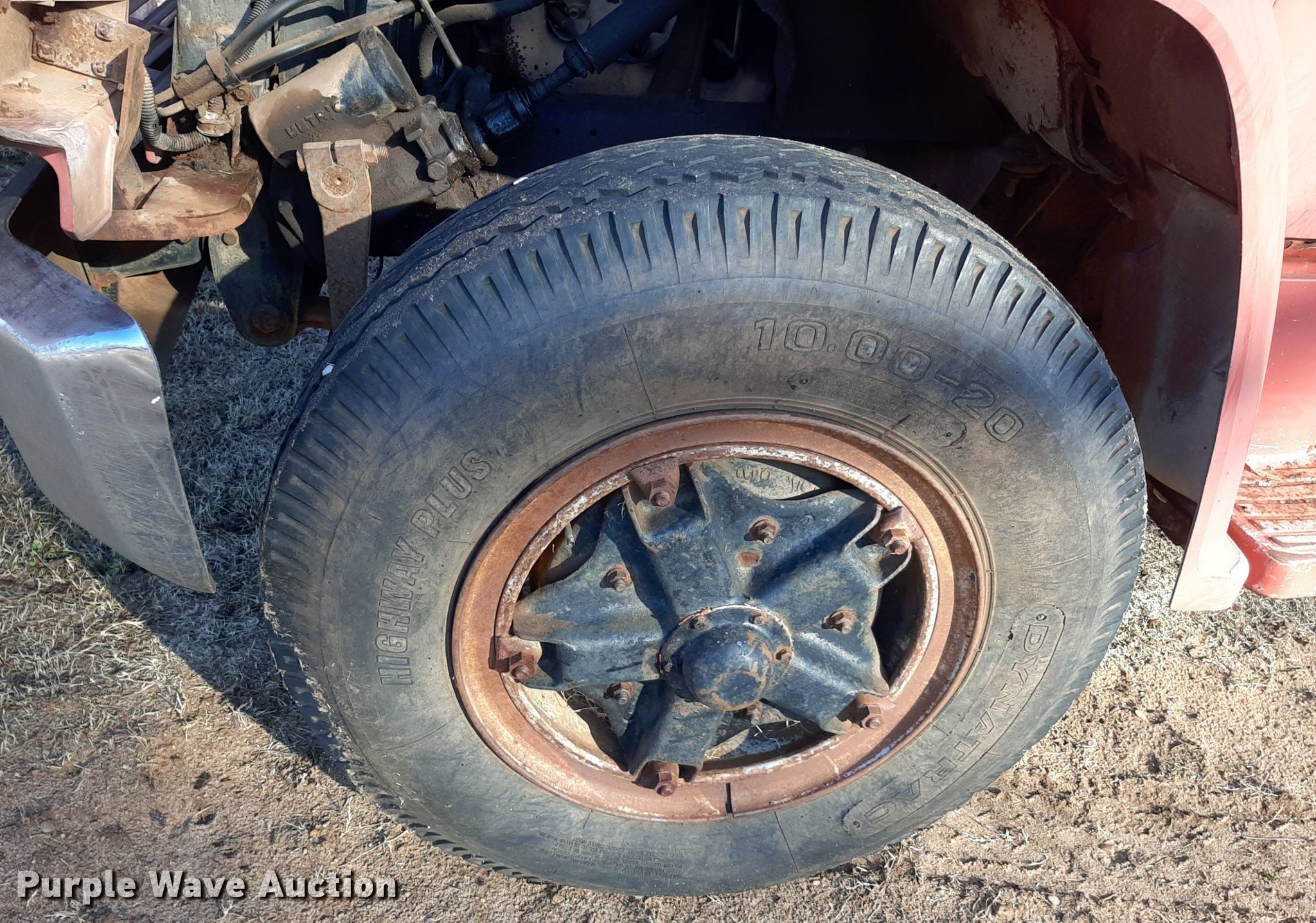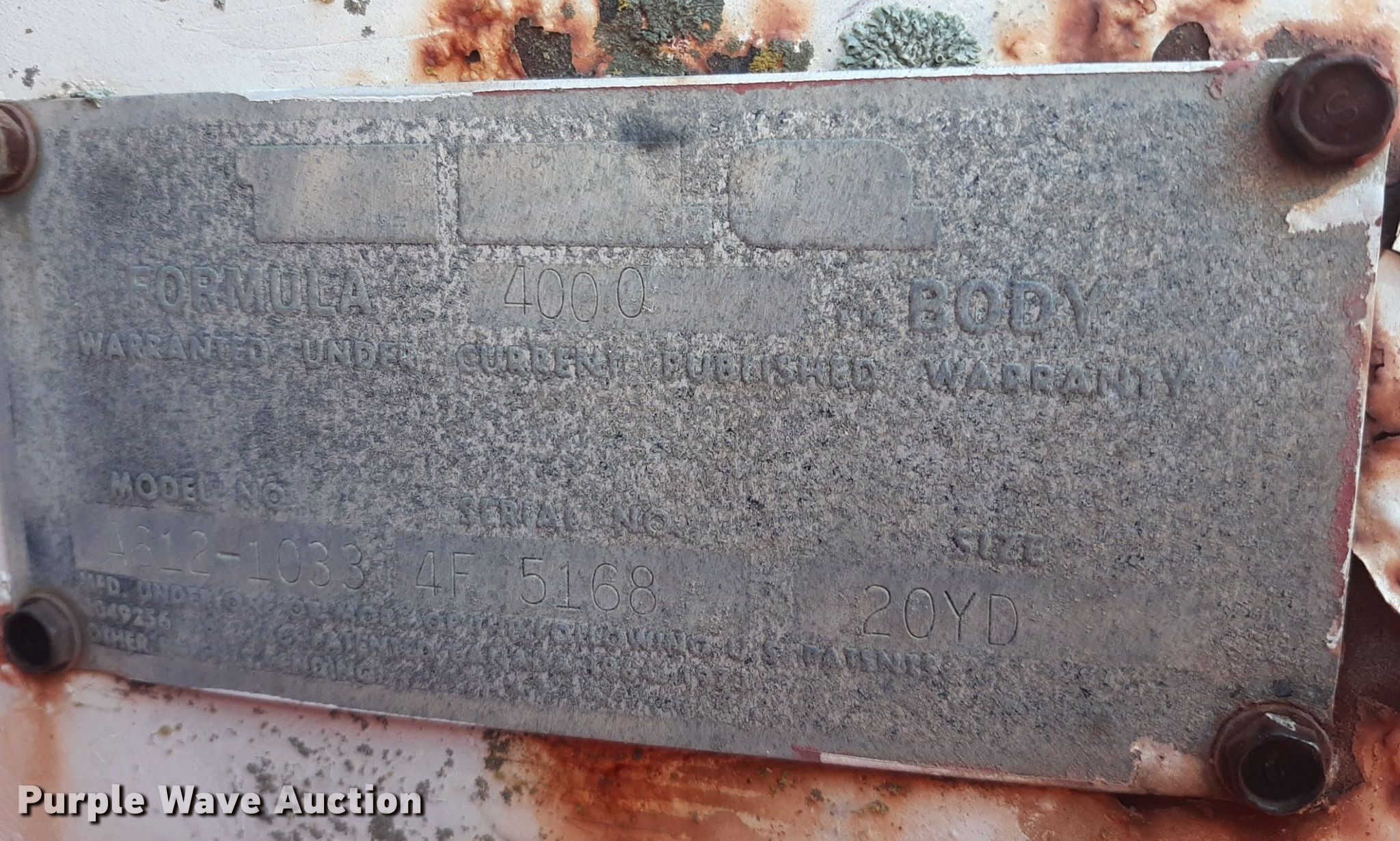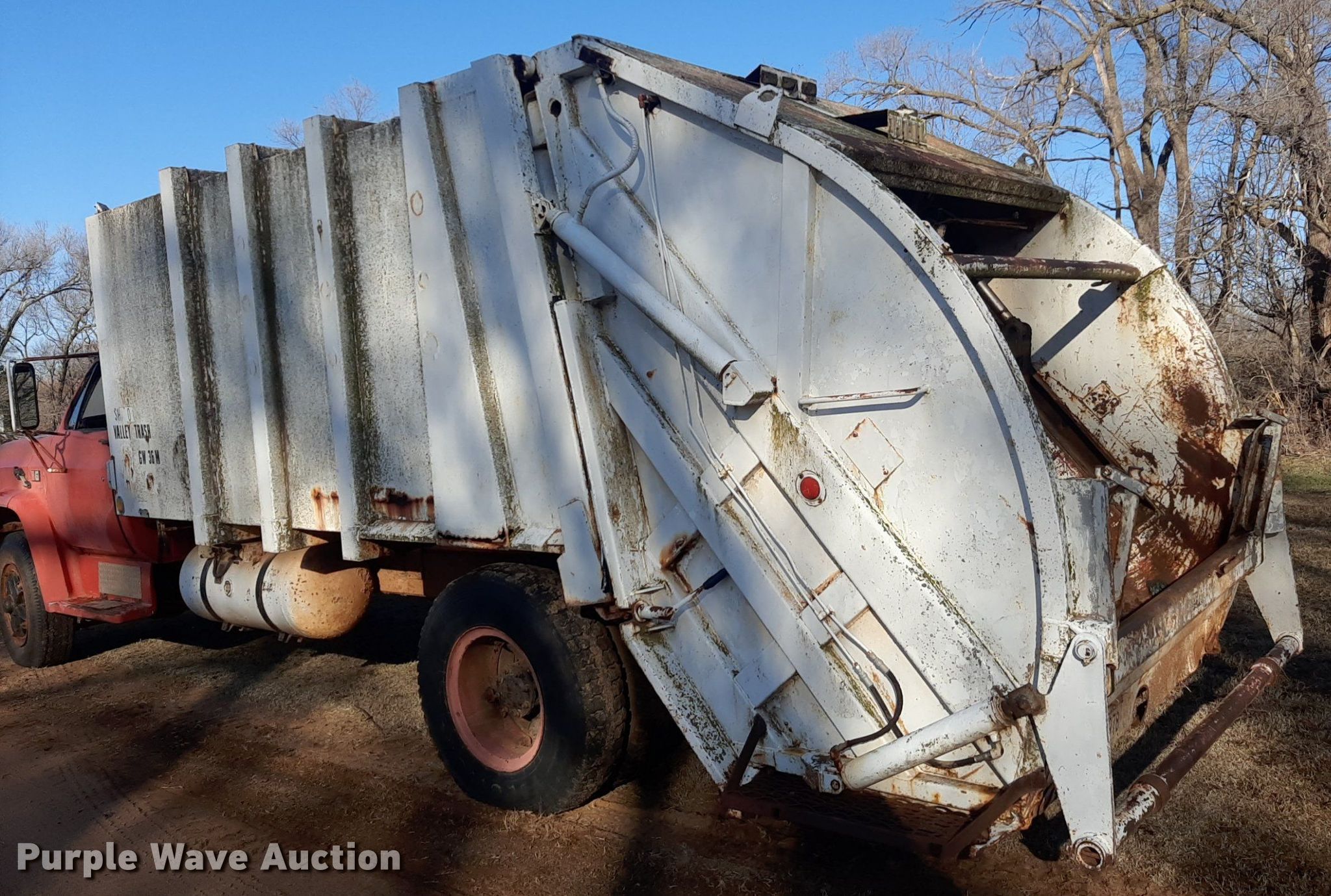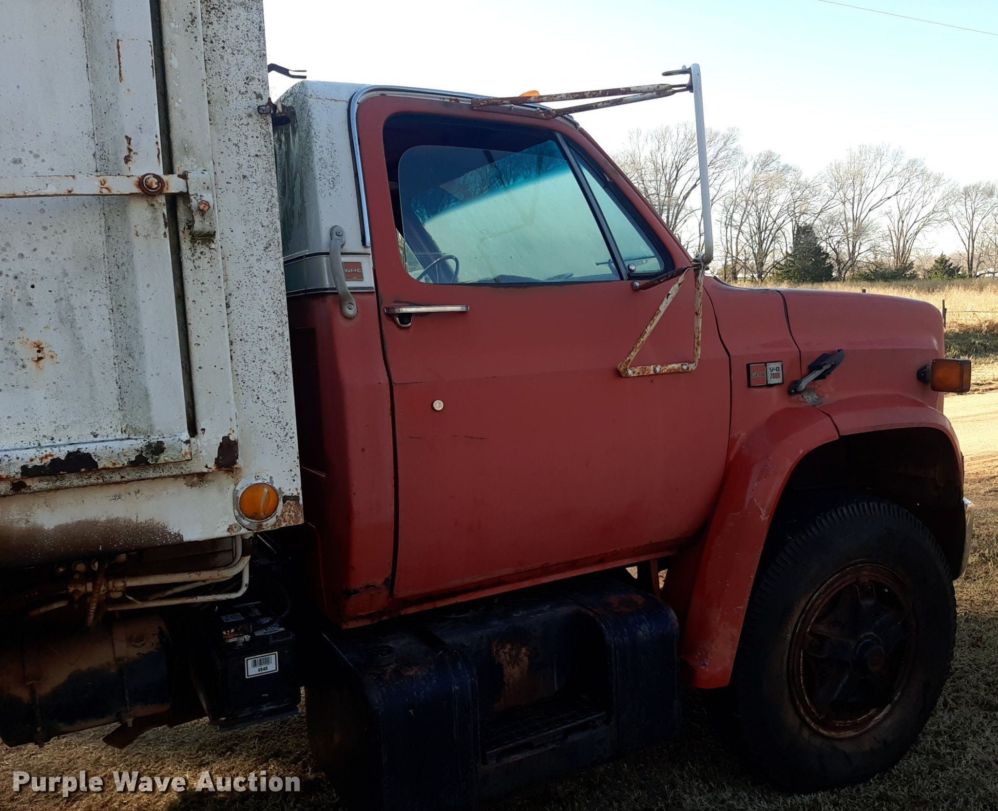 1980 GMC 7000 refuse truck. Miles: 80,067 on odometer, VIN: T17DBAV605081. Engine Cylinders: 8, Fuel type: Dual fuel. Transmission Manual, Speed: 5. Chassis Axles: Single, Suspension: Spring, Brakes: Hydraulic. Interior Heat. Features Refuse bed Formula A612-1033, Serial: 4F5168, Capacity: 20 cu.yd., Load: Rear. Tires Size: 10R-20. Notes Dead battery. Kansas title. Title distribution may be delayed up to 14 days from verification of funds. Sharon, KS 67138