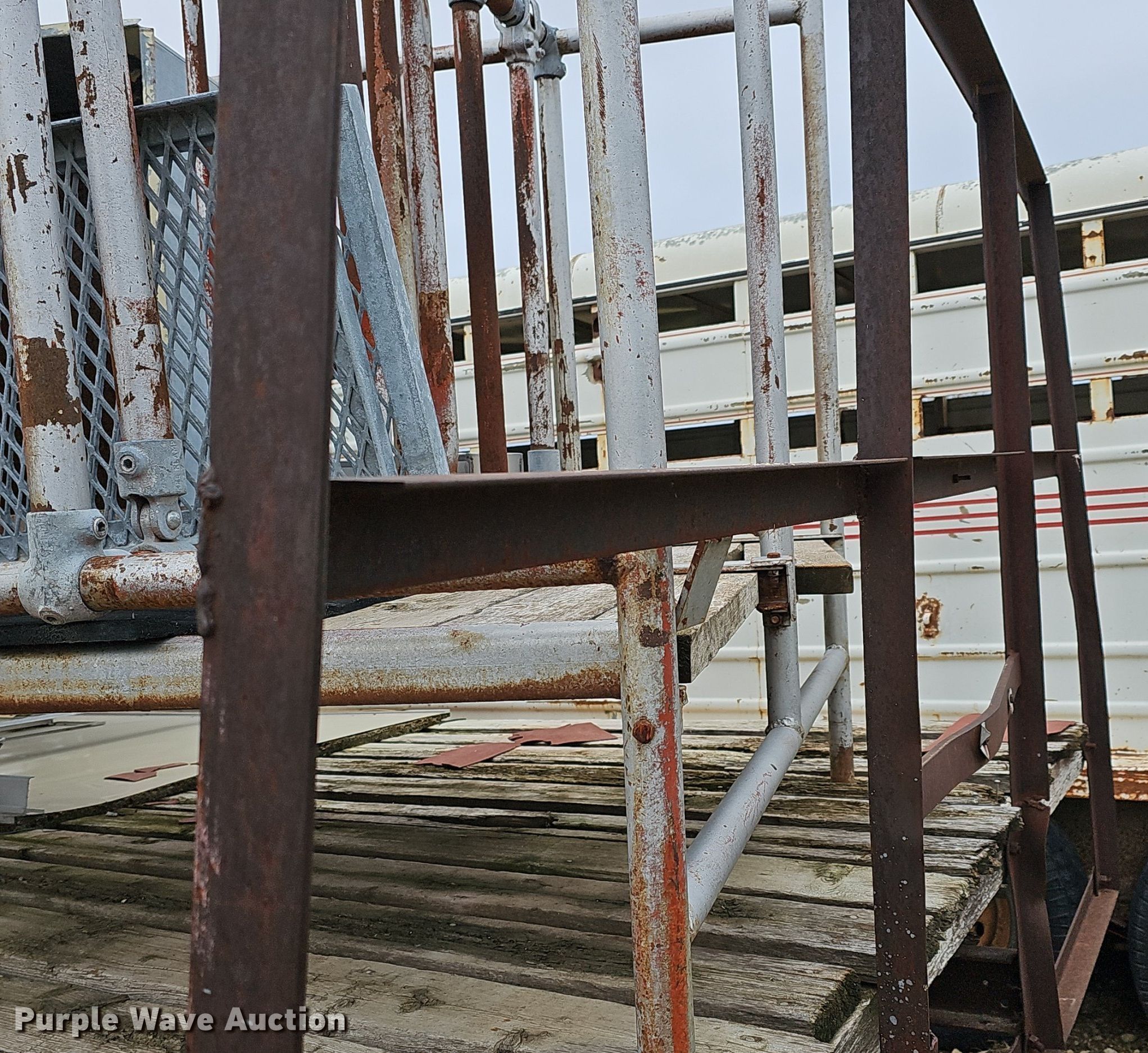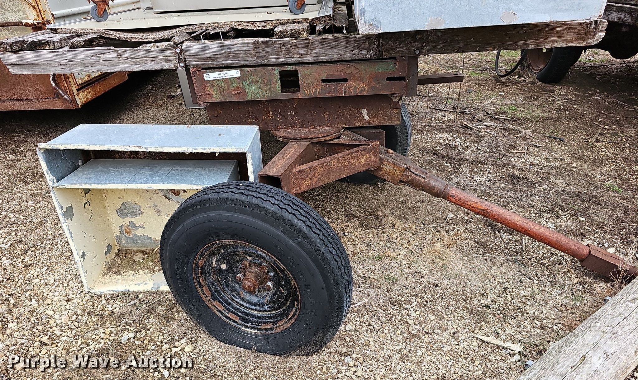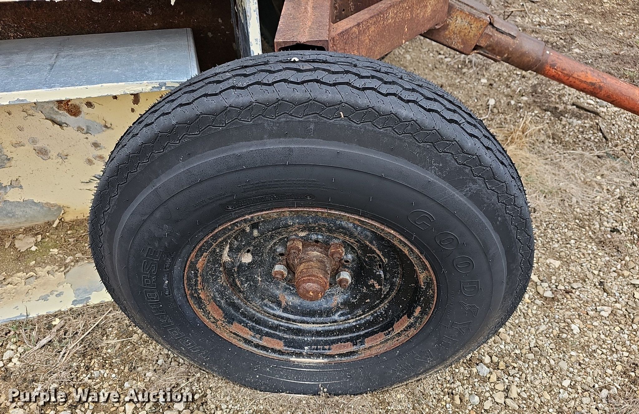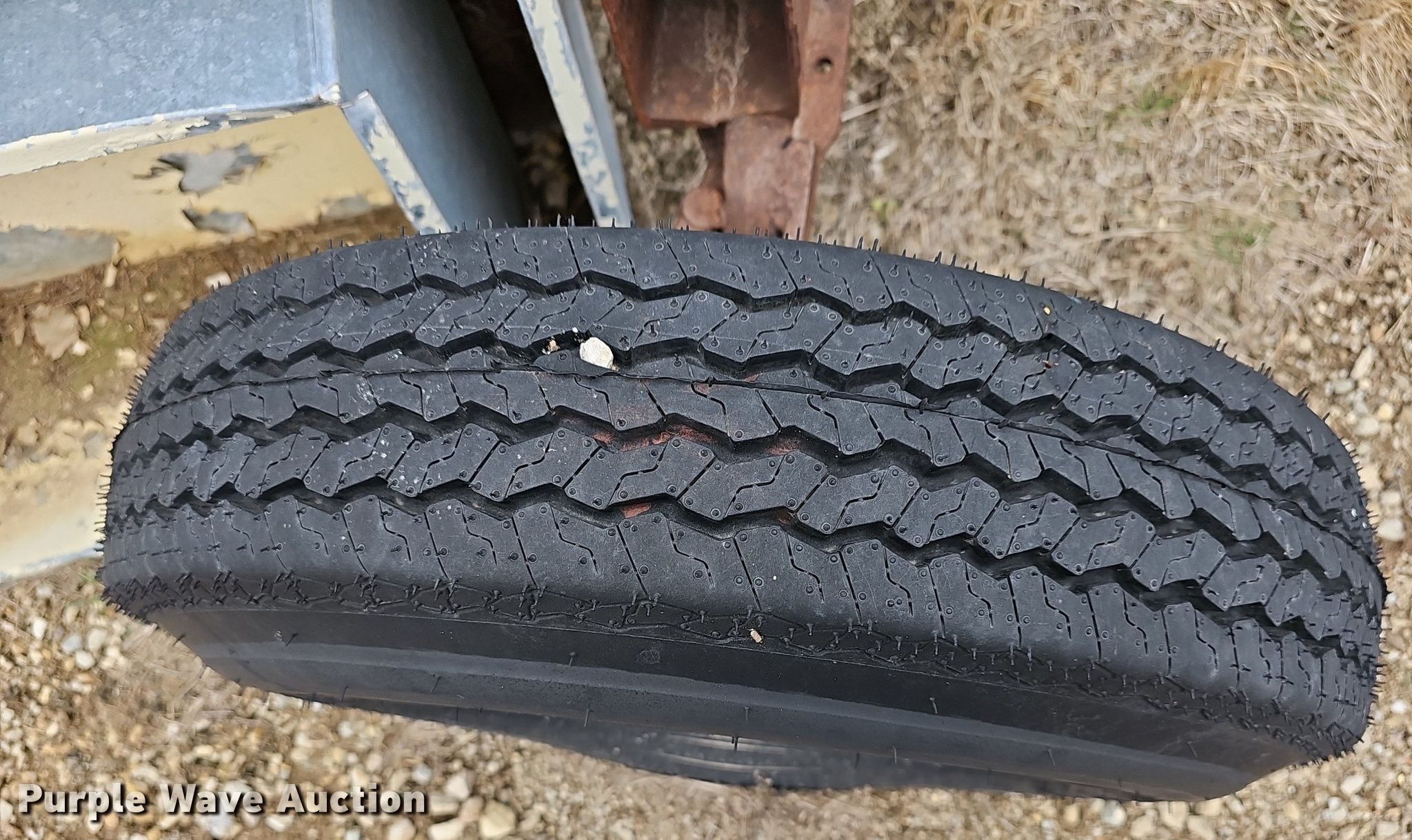Hay wagon. Unit #: 32. Dimensions Length: 15'. Features Wood floor. Chassis Hitch: Pin, Suspension: Spring. Tires Front: 7.00-15, Rear: 7.50-20. Notes Tire damage, Contents not included. Manhattan, KS 66503