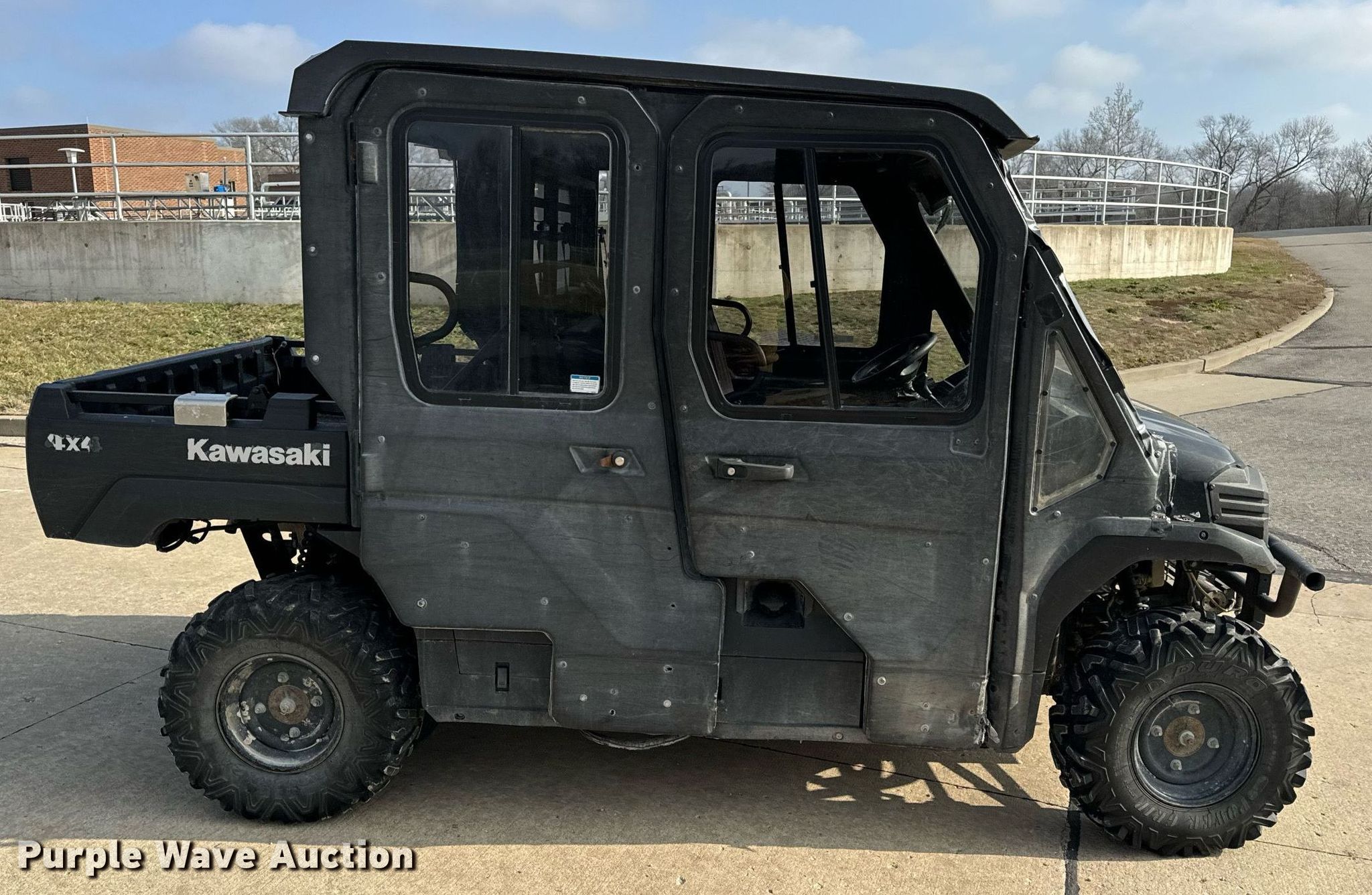 2018 Kawasaki Mule Pro-FXT utility vehicle. Miles: 20,970 on odometer, Hours: 1,851 on meter, VIN: JKBAFSA10JB501228. Engine Kawasaki, Serial: 372FBFHH00543, Fuel type: Gas, Electric start. Transmission Automatic. Chassis Four wheel drive. Operators station Enclosed cab, Canopy, Heat. Features Winch, Receiver hitch, Dump bed 44.5" L x 55" W, Dump bed type: Manual. Tires Front: AT26X9R12, Rear: AT26X11R12. Transfer of ownership documentation will be a bill of sale which will be assigned and distributed by the seller. City of Columbia. 4900 W Gillespie Bridge Rd. Columbia, MO 65203