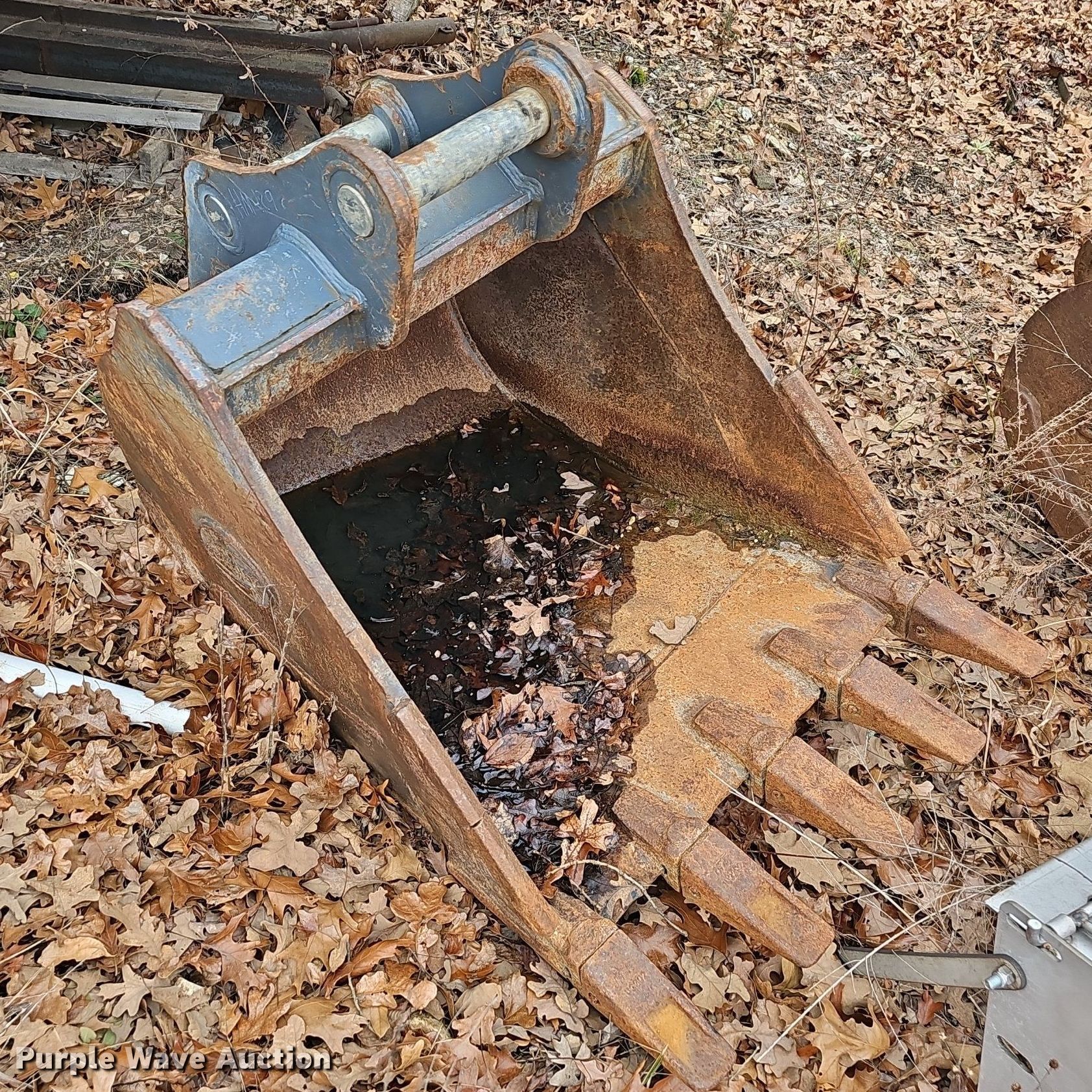 2018 Kobelco SK140SRLC-5 excavator. Hours: 583 on meter, Serial: YH08-12810. Engine Isuzu , Cylinders: 4, Fuel type: Diesel. Transmission Hydrostatic. Operators station Enclosed cab, AC, heat, Pattern changer. Features Auxiliary hydraulics, Backfill blade Width: 102", Boom Standard, Stick Stick length: 8', Quick coupler: Hydraulic, Thumb: Hydraulic, Bucket Strickland, Width: 36", Teeth: 5. Tracks Width: 24", Steel, Grouser pads: Triple. Notes Counter weight issues, cracked, Bucket on machine is not included, Warning indicator: Def indicator warning. St. Clair County MO. 4020 NE 60 Rd. Osceola, MO 64776