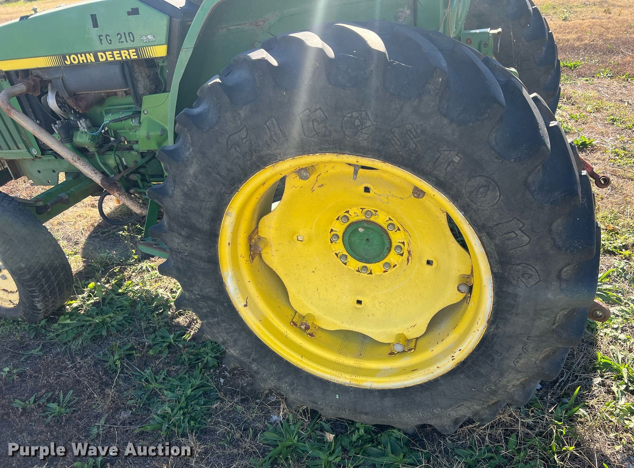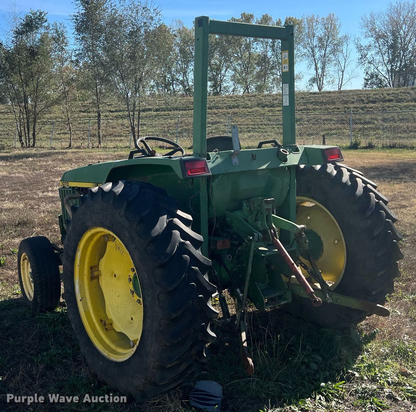 1995 John Deere 1070 tractor. Hours: 6,924 on meter, Serial: M01070A140227. Engine Cylinders: 4, Fuel type: Diesel. Transmission Manual, 9F - 3R. Features PTO: 540, Three point Top link, Hydraulic remote sets Rear: 1. Tires Front: 27x8.50-15, Rear: 13.6-28. Notes Non-operational unit. Shawnee County Parks and Recreation. 301 Northwest Curtis Street. Topeka, KS 66608