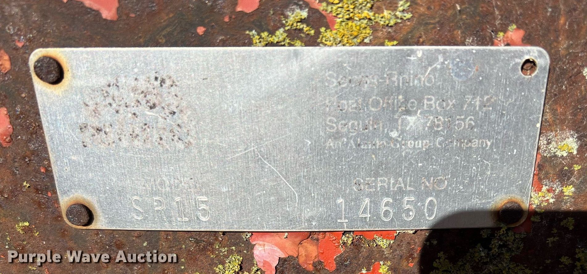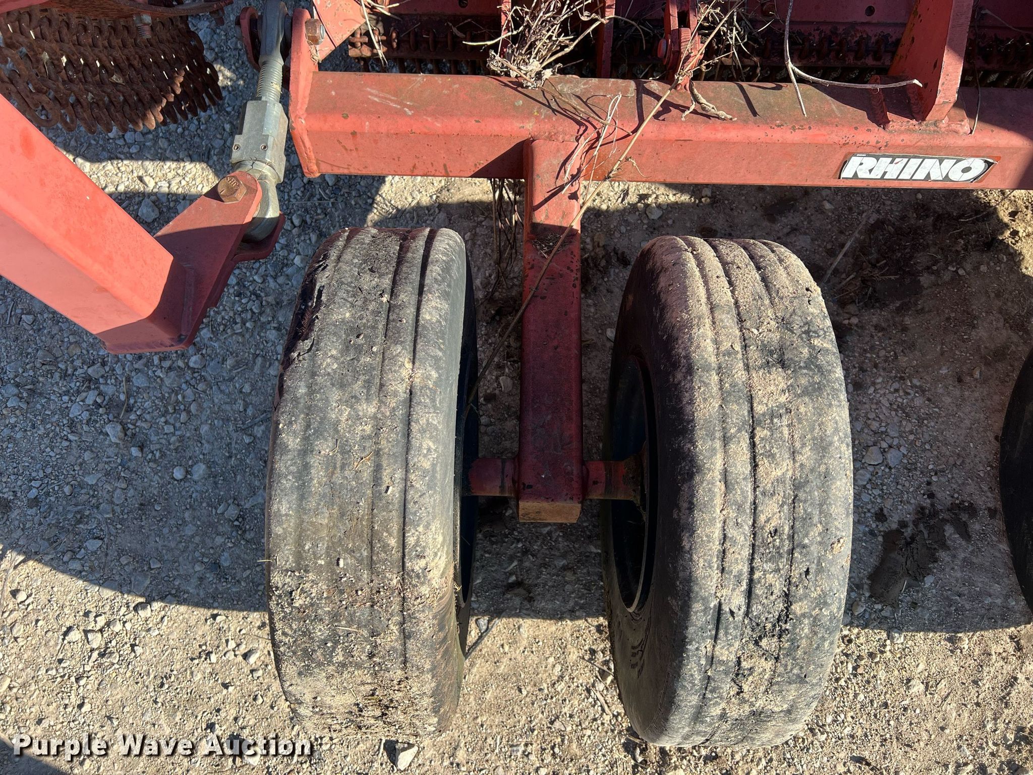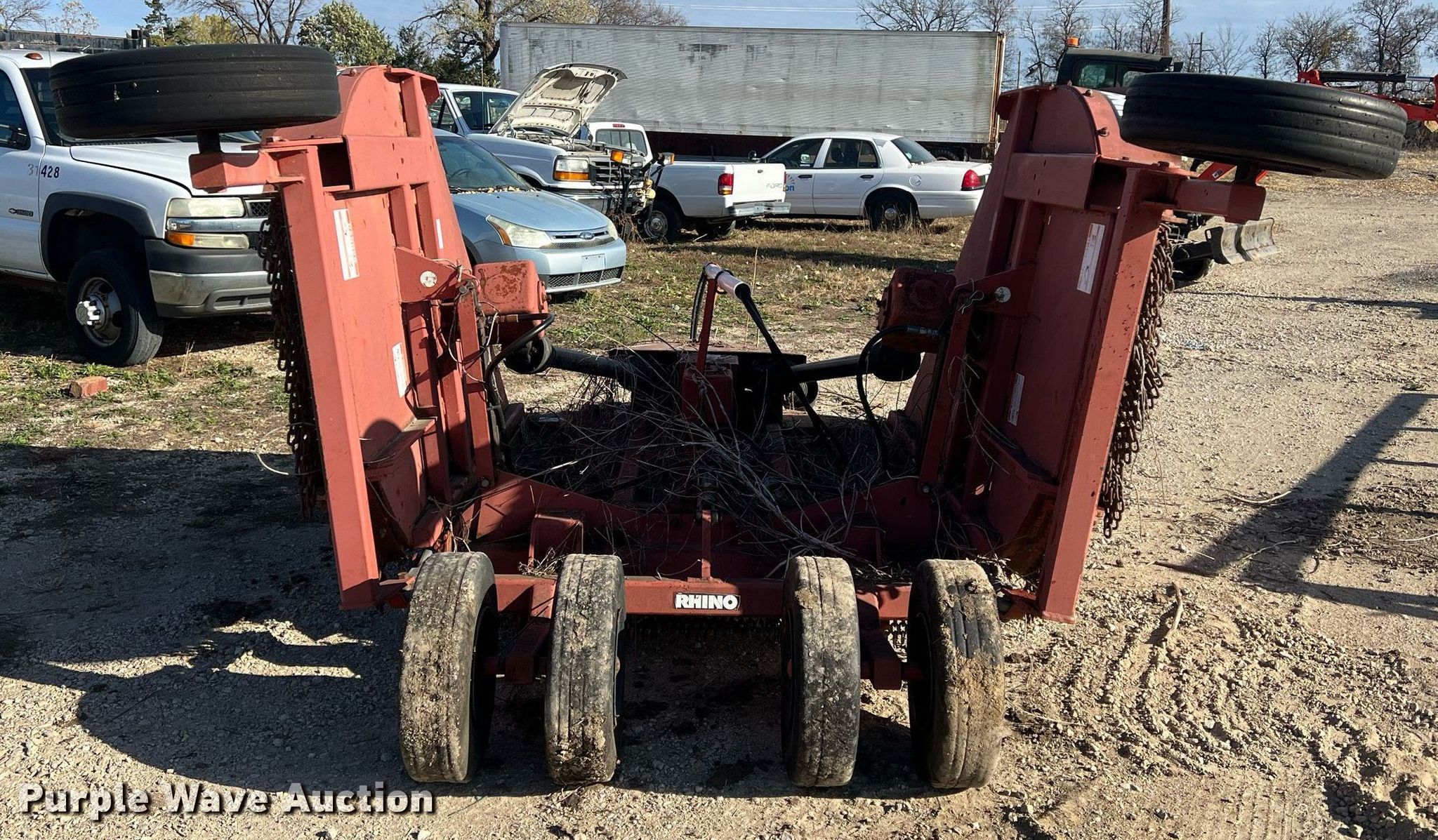 Rhino SR15 batwing rotary mower. Serial: 14650. Features Width: 15', Hydraulic lift, Hydraulic fold, PTO: 540. Tires Size: 24x7.7, Solid. Notes Unknown operating condition. Shawnee County Parks and Recreation. 3137 Southeast 29th Street. Topeka, KS 66605