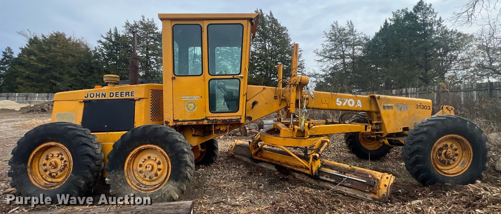 Purple Wave is selling a used Motor Grader in Kansas. This item is a John Deere 570A motor grader with the following: Hours: 3,810 on meter, Serial: DW570AX406461