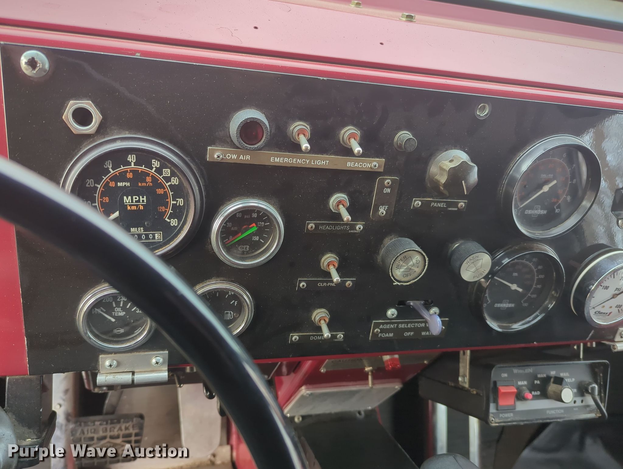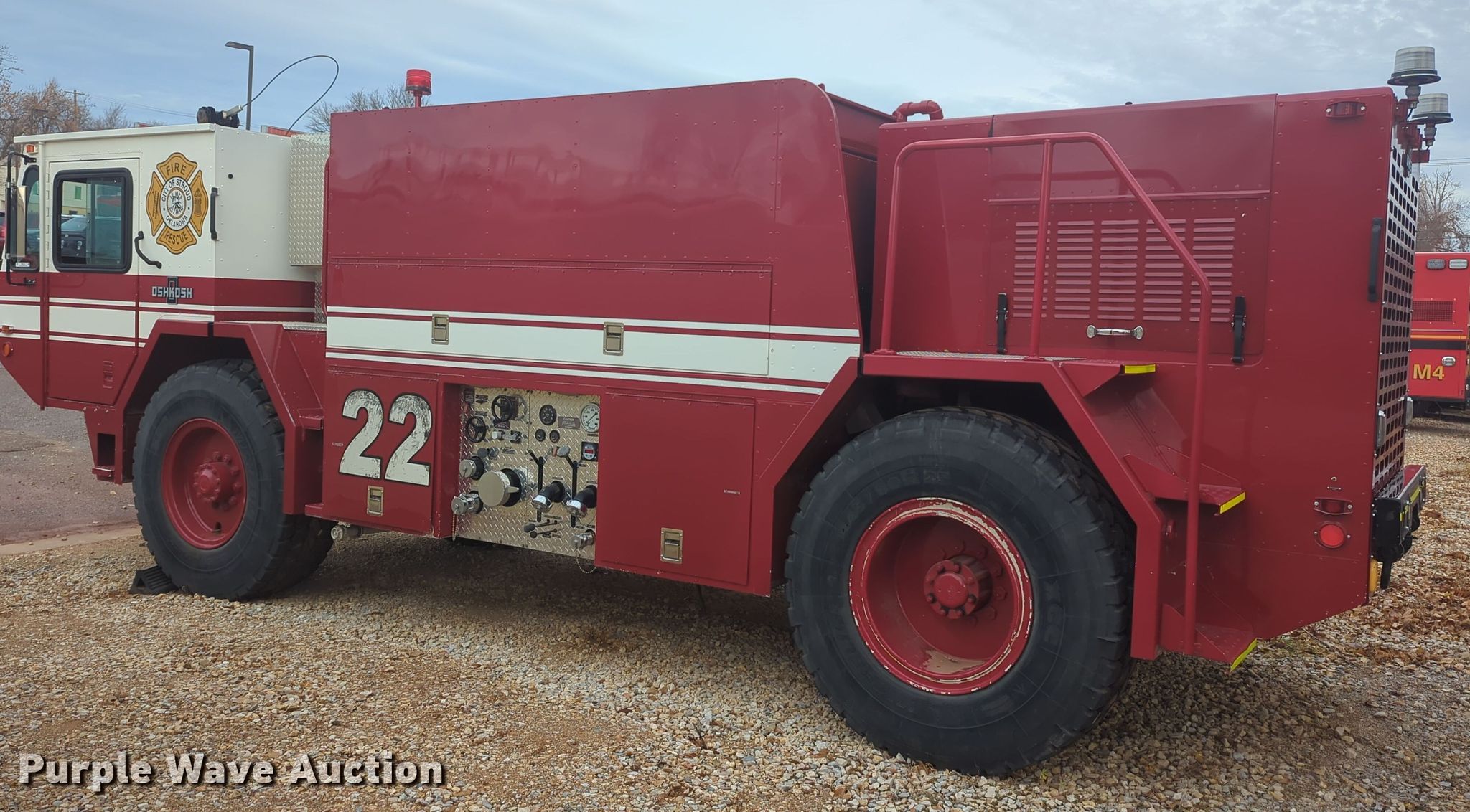 Purple Wave is selling a used Fire Truck or Emergency Vehicle in Oklahoma. This item is a 1986 Oshkosh T-series pumper fire truck with the following: Miles: 3,000 on odometer, Actual mileage unknown, Hours: 263 on meter, VIN: 10T9L5BE1G1026515