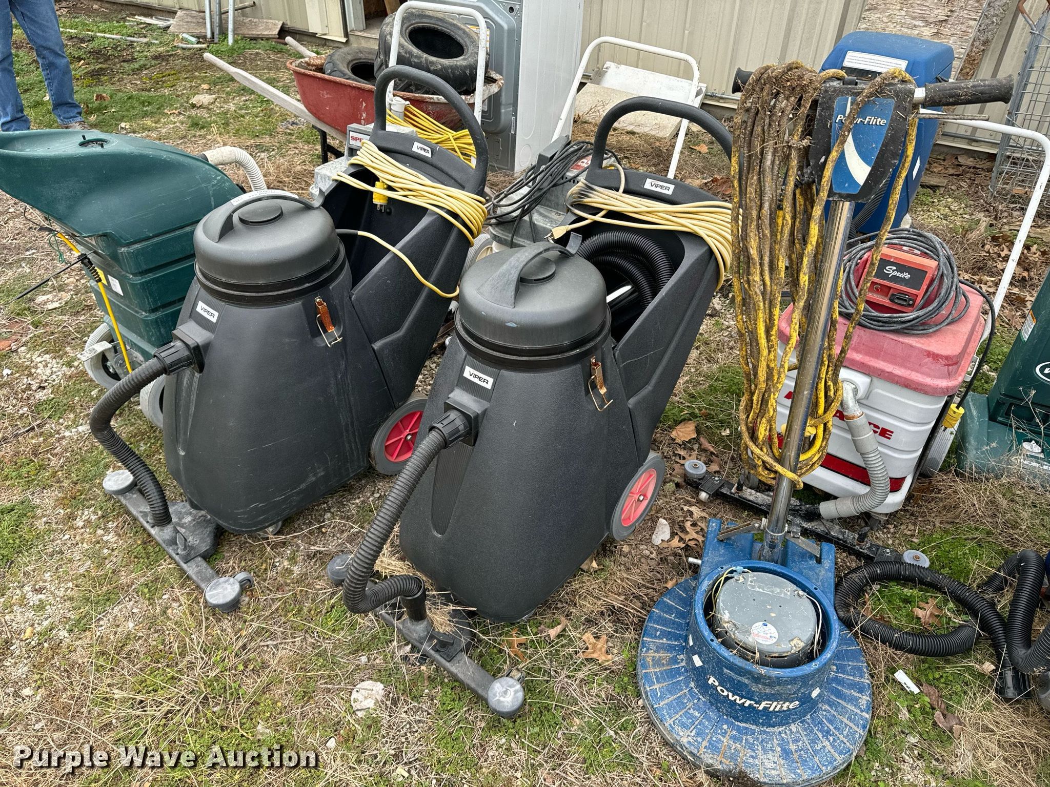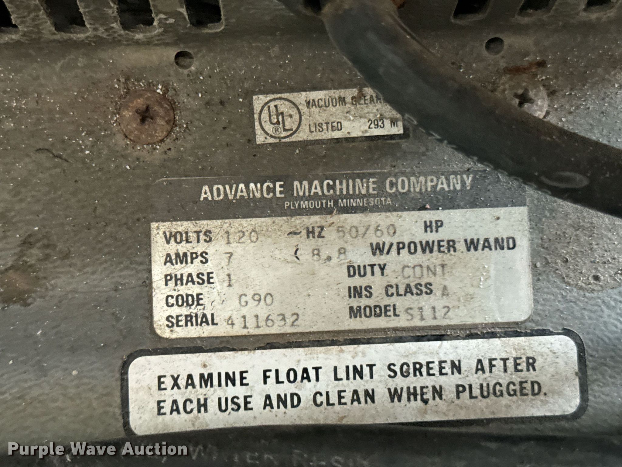 Purple Wave is selling a used Other Industrial or Business in Kansas. This item is a Floor cleaners and vacuums with the following: Hillyard C3 cleaning companion recovery system, Phase: Single, Advance Machine Company S112, Phase: Single, Volts: 115, Advance Machine Company 209004, Volts: 120, Phase: Single, Advance Machine Company 209007, Phase: Single, (2) Viper SN18WD, Volts: 120, Phase: Single, Nobles Typhoon EV 608689, Volts: 120, Phase: Single, Powr-Flite Predator, Volts: 24, Phase: Single, Advance Pacesetter 200HD floor scrubber, Phase: Single, Powr-Flite floor scrubber, Phase: Single, Nobles vacuum cleaner, Phase: Single, Viper vacuum cleaner, Phase: Single, Powr-Flite 20 floor scrubber, Phase: Single, Howell floor scrubber, Phase: Single, Clarke FM-20 floor scrubber, Phase: Single, Volts: 115, Advance Machine Company Sprite A12, Phase: Single, Volts: 120