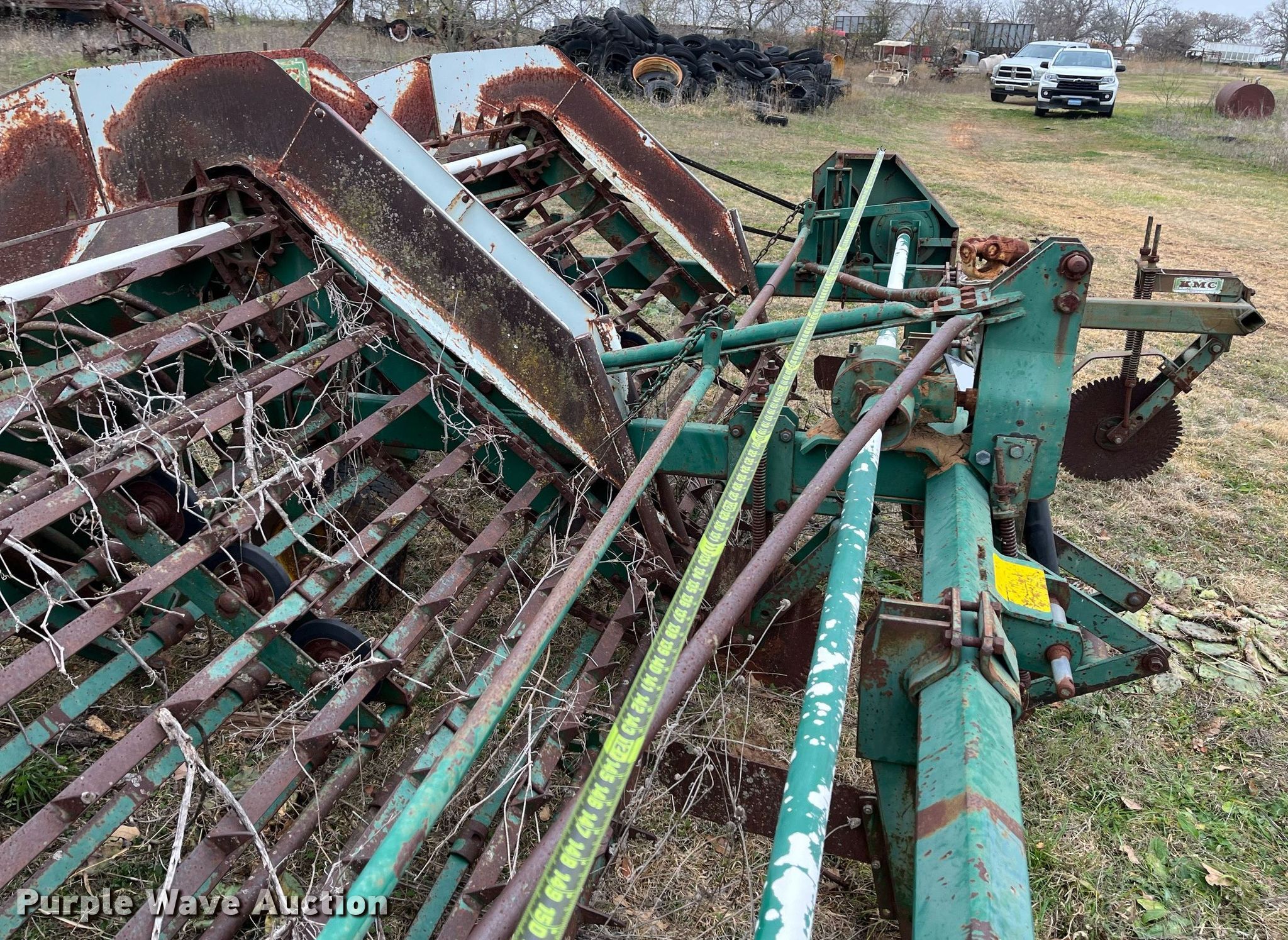 KMC peanut harvester. Serial: 32138. Features Overall: 13', PTO: 1000, Three point, (2) 5' 6" shoots. Tires Size: 10.5x8.0-10. 5122 County Road 284. Dublin, TX 76446
