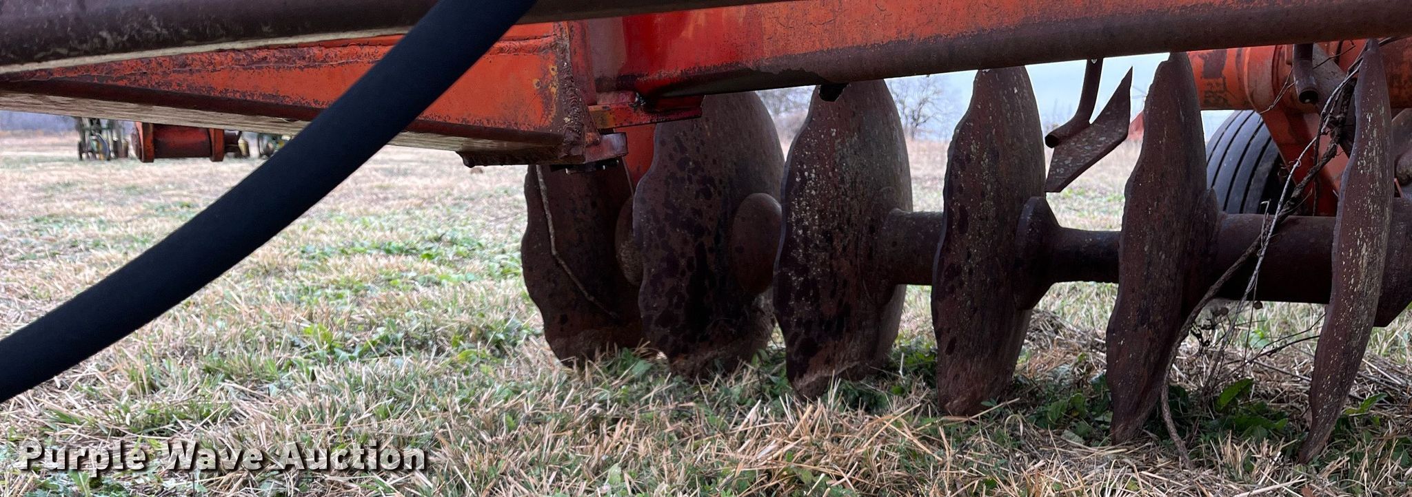 Purple Wave is selling a used Disk in Texas. This item is a Miller tandem disk with the following: Overall width: 20', Serial: 1SFH4246