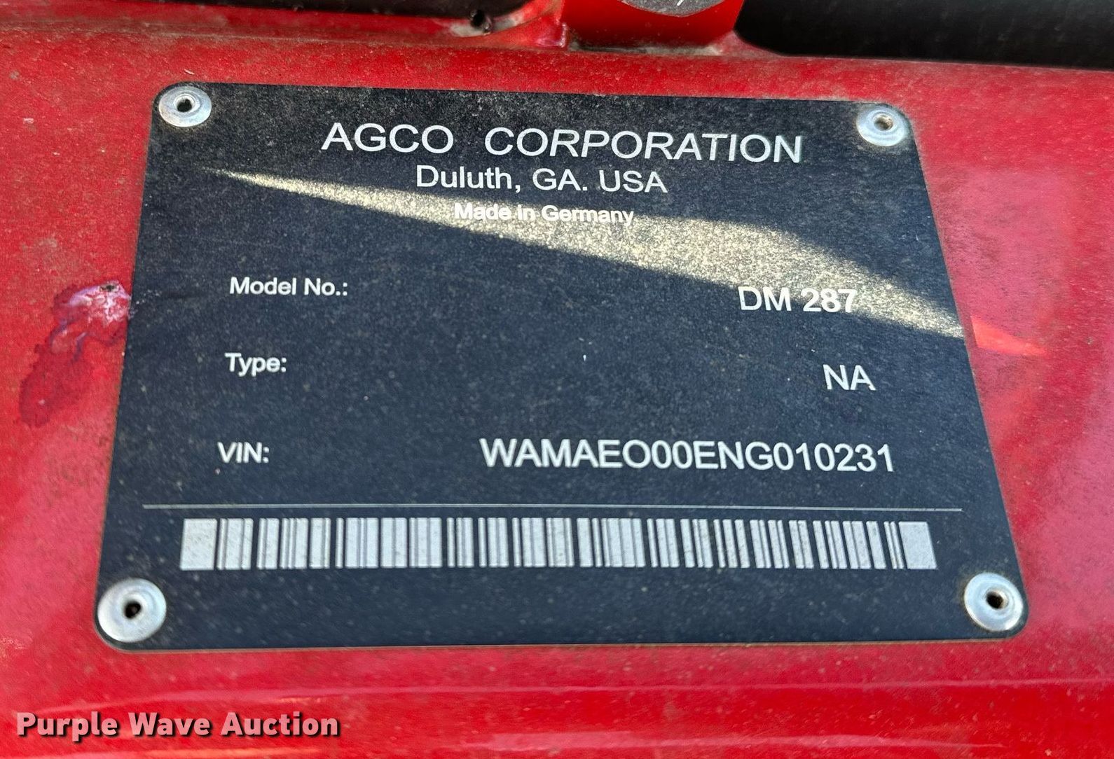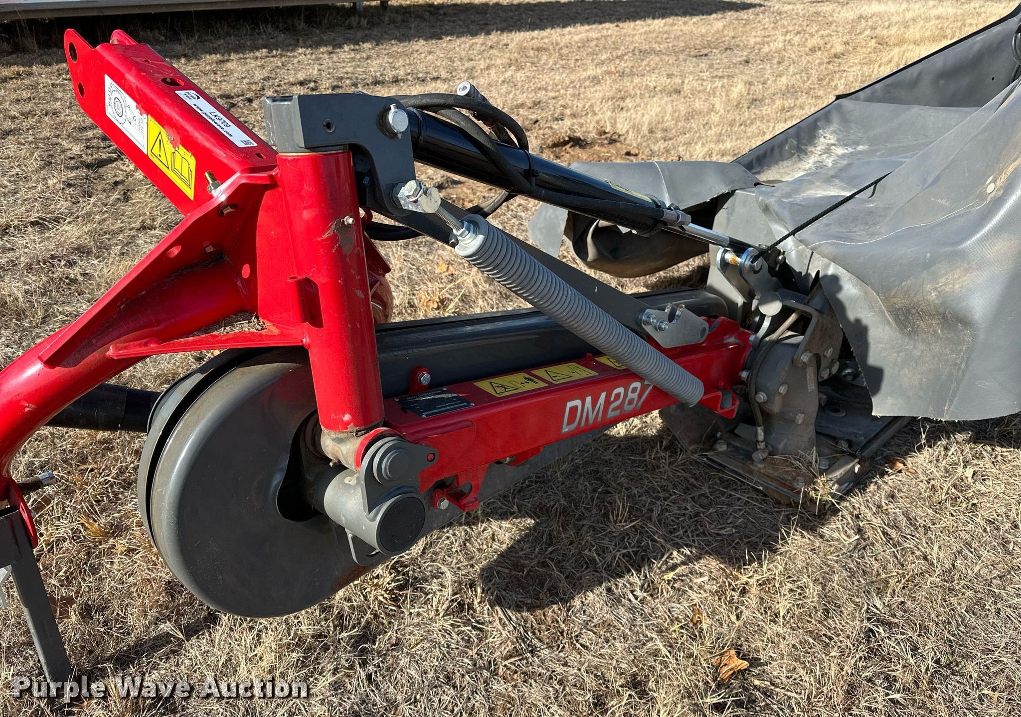 Purple Wave is selling a used Disc or Sickle Mower in Oklahoma. This item is a 2023 Massey Ferguson DM287 disc mower with the following: Serial: WAMAE000ENG010231, Claim #: 3-818935