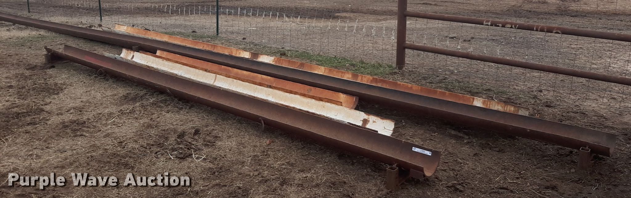 Purple Wave is selling a used Livestock Equip. in Kansas. This item is a (5) feed bunks with the following: Approximately, 11' L x 10" W, 14' L x 10" W, 18' 10" L x 10" W, 23' L x 10" W, 40' L x 10" W