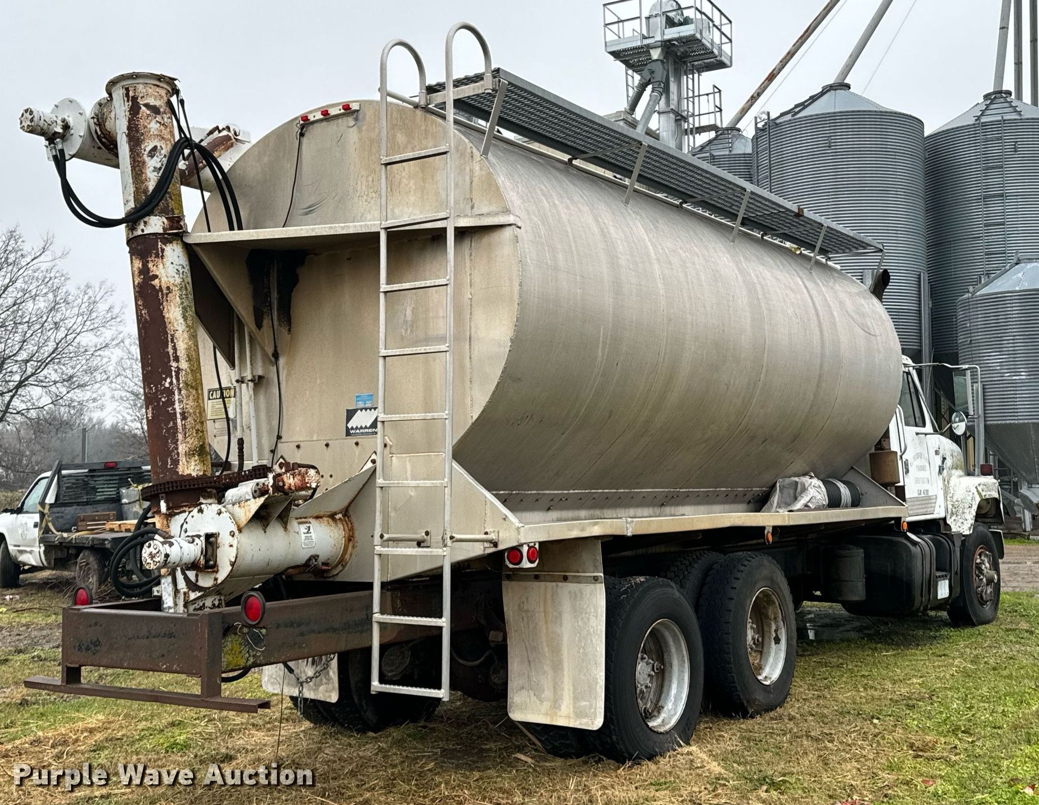 1984 International F2575 feed delivery truck. Miles: 578,263 on odometer, VIN: 1HSZJJSR4EHA31440. Engine Displacement: 14.0L, Cylinders: 6, Fuel type: Diesel. Transmission Manual. Chassis Axles: Tandem, Suspension: Spring, Brakes: Air. Interior AC, heat. Features Delivery bed Length:18' , Capacity: 23 tons, Compartments: 4, Discharge auger Diameter: 12", Length: 25', Side, Ground controls. Tires Size: 11/R22.5. Notes Dead battery, Unknown operating condition. Oklahoma classic title. Title distribution may be delayed up to 14 days from verification of funds. Donald Trett. Claremore, OK 74018