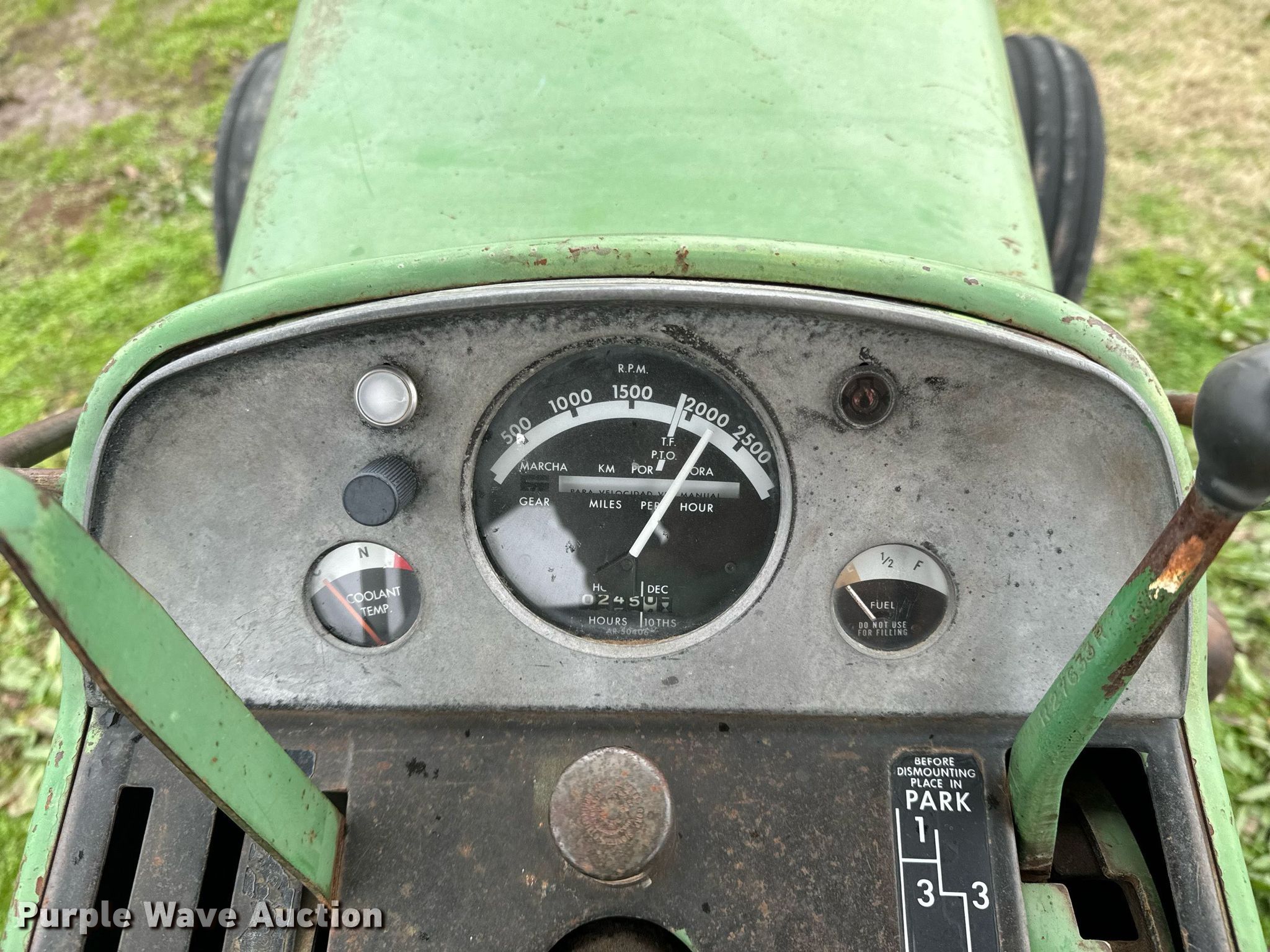 1967 John Deere 4020 tractor. Hours: 245 on meter, Serial: T213R158894R. Engine Cylinders: 6, Fuel type: Diesel. Transmission Synchro, 8F - 2R. Features PTO: 540, Three point, Hydraulic remote sets Rear: 1, Suitcase weights: 5. Tires Front: 10.00-16, Rear: 18.4-34, Wheel weights: 4. Notes Non-operational unit. 360 West Madison Street. Fredonia, KS 66736