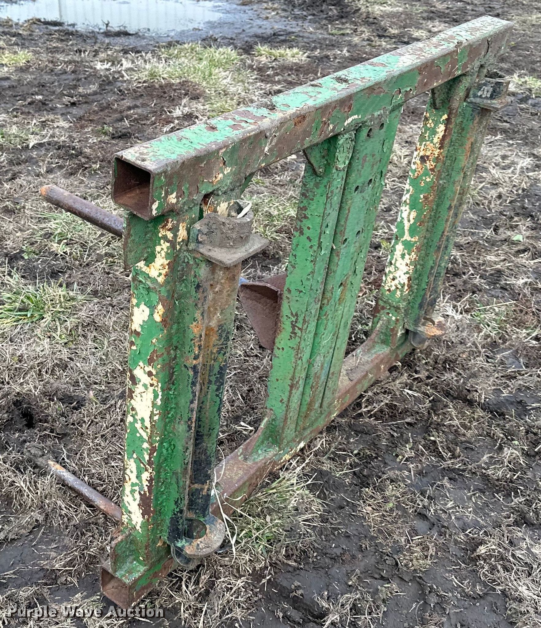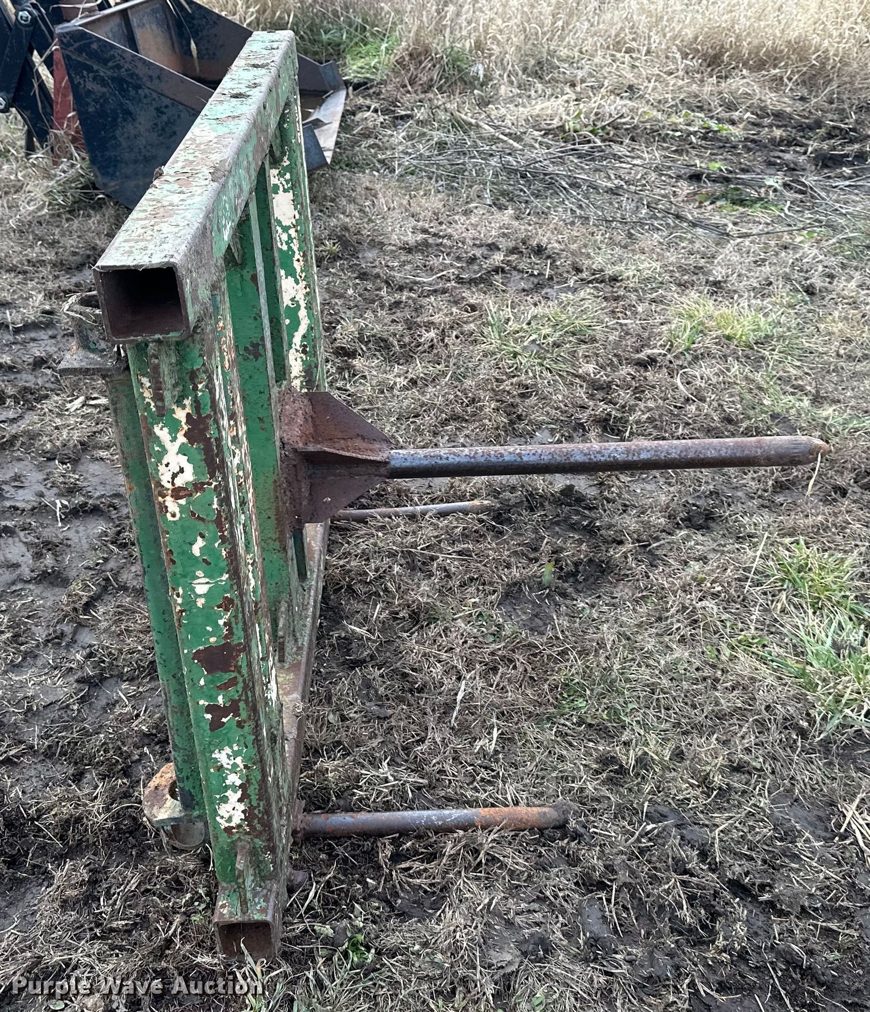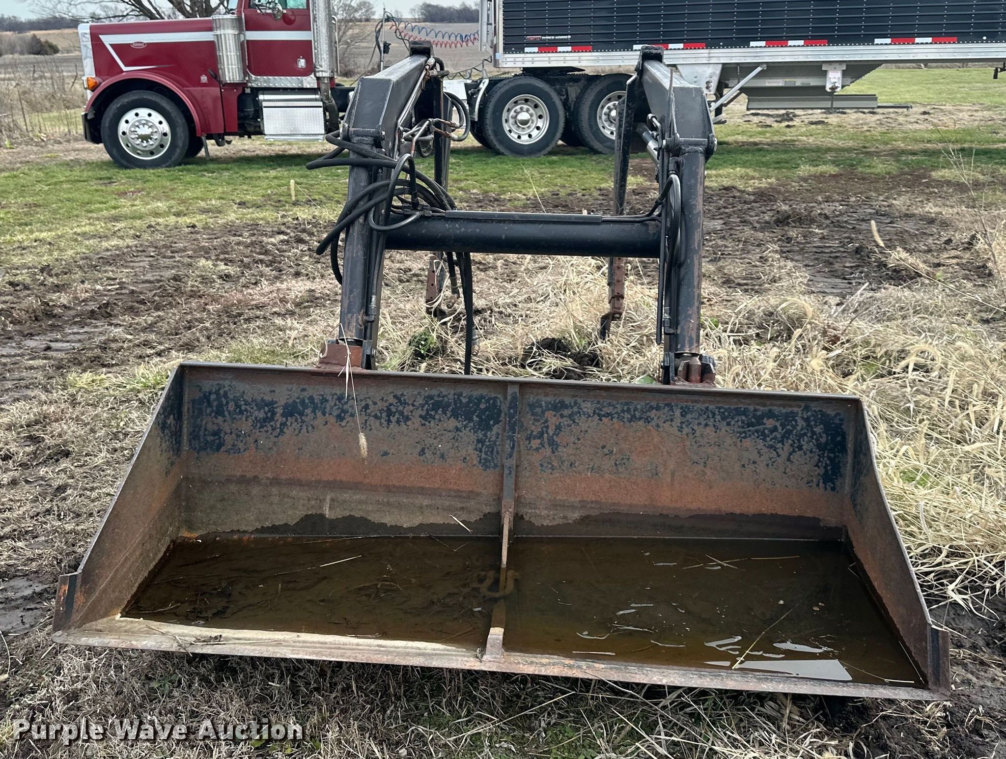 Purple Wave is selling a used Ag Tractor Loader or Attach. in Kansas. This item is a Westendorf TA26 loader with the following: Quick attach, Bale spear, Bucket, Width: 73", Removed from John Deere 4055