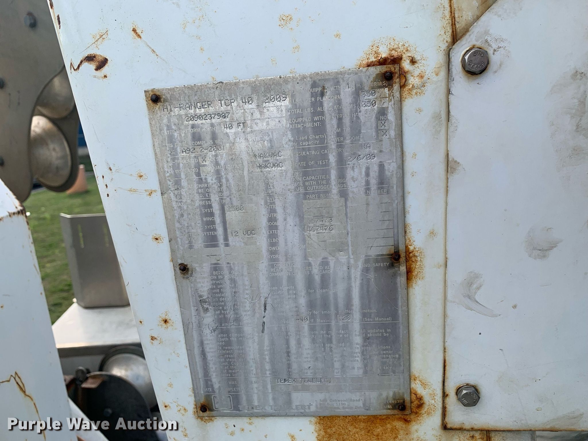 2008 GMC 7500 bucket truck. Miles: 126,310 on odometer, VIN: 1GDL7C1G78F413740. Engine Displacement: 8.1L, Cylinders: 8, Fuel type: Gas. Transmission Automatic. Chassis Axles: Single, Suspension: Spring, Brakes: Hydraulic, PTO, GVWR: 29,000 lbs. Interior AC, Heat, Heated mirrors, Cruise control. Features Bed Terex Hi-Ranger TCP 40, 12' 5" L x 8' 3" W, Boom 2009 TEREX Hi-Ranger TCP 40, Serial: 2090237987, Mast height: 40', Maximum lift capacity: 350 lbs, Maximum lift height: 46', Boom type: Articulating, Telescopic, Man basket, Boom controls Ground, Platform/ basket, Material handler, Dimensions Super Inverter. Tires Front: 10R22.5, Rear: 11R22.5. Notes PTO issues, air line broken, Man basket damaged, Unknown operating condition of boom. Texas bonded title. Title distribution may be delayed up to 14 days from verification of funds. 6610 Thompson Road. Baytown, TX 77521