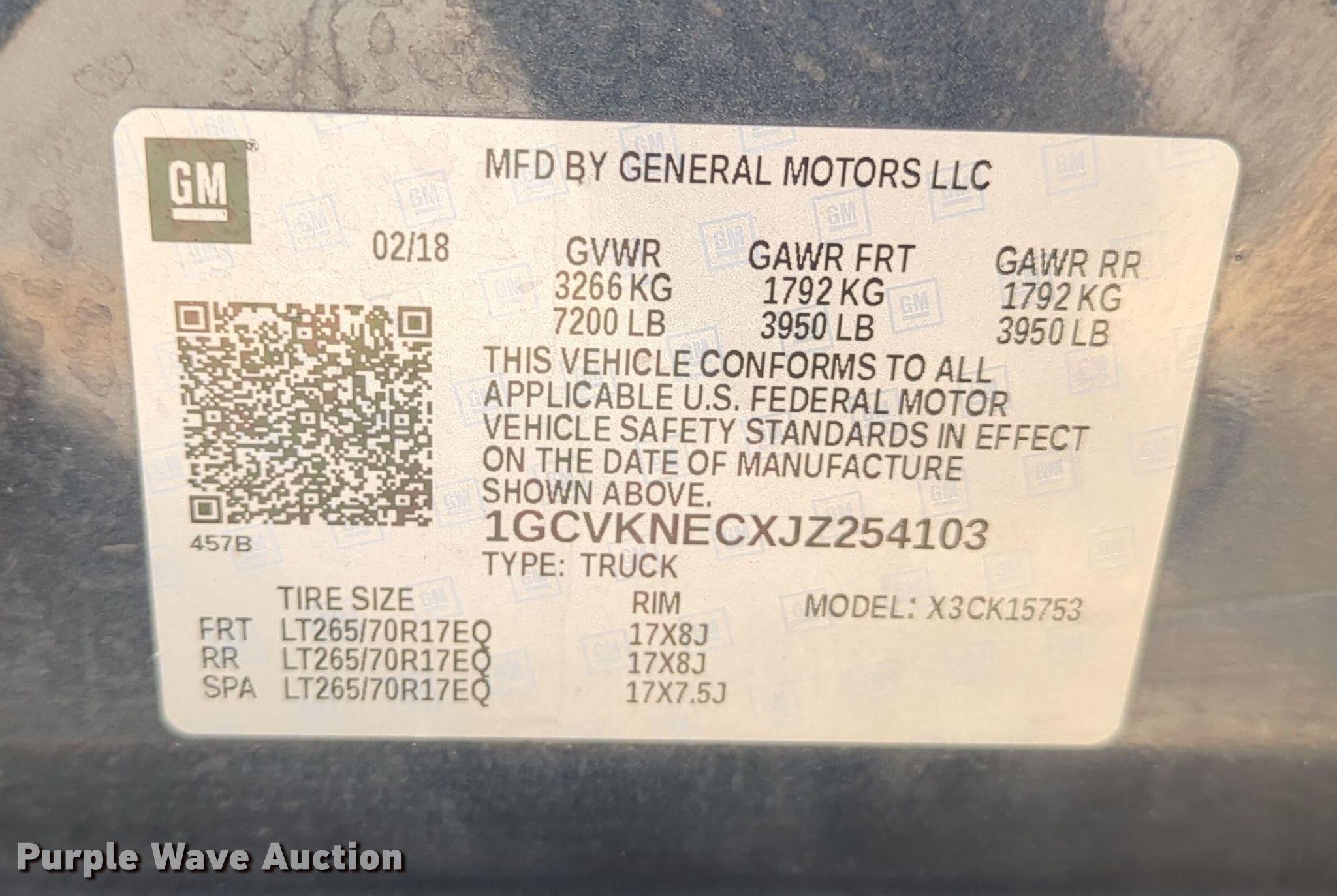 Purple Wave is selling a used 1/2 Ton Pickup or Van in Oklahoma. This item is a 2018 Chevrolet Silverado 1500 Double Cab pickup truck with the following: Miles: 144,243 on odometer, VIN: 1GCVKNECXJZ254103, Unit #: 254103