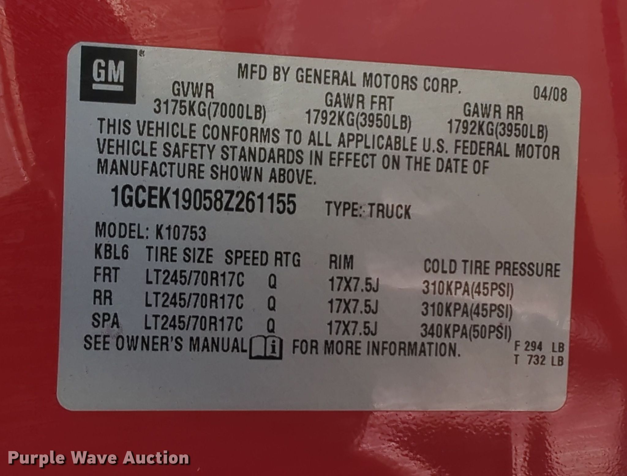 Purple Wave is selling a used 1/2 Ton Pickup or Van in Oklahoma. This item is a 2008 Chevrolet Silverado 1500 Ext. Cab pickup truck with the following: Miles: 105,355 on odometer, VIN: 1GCEK19058Z261155, Unit #: 261155