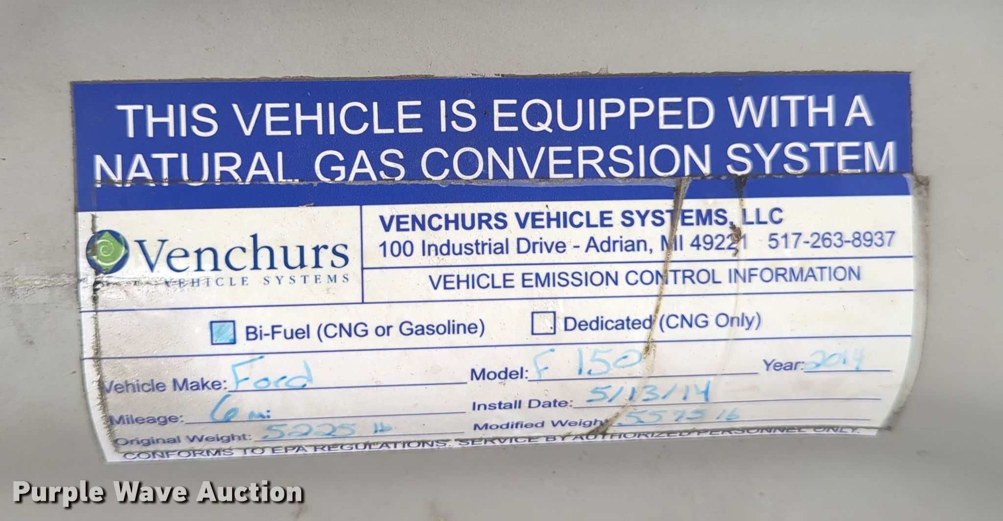 2014 Ford F150 XL SuperCab pickup truck. Miles: 147,683 on odometer, VIN: 1FTEX1EM1EKD94719, Unit #: D94719. Engine Displacement: 3.7L V6 DOHC, Cylinders: 6, Fuel type: Gas, CNG. Transmission Automatic, Four wheel drive. Interior AC, Heat, Power windows, Power locks, Cruise control. Tires Size: LT245/75R17. Oklahoma title. Title distribution may be delayed up to 30 days from verification of funds. Oklahoma Department of Wildlife Conservation - Open Inspection January 29. 1801 North Lincoln Boulevard. Oklahoma City, OK 73105