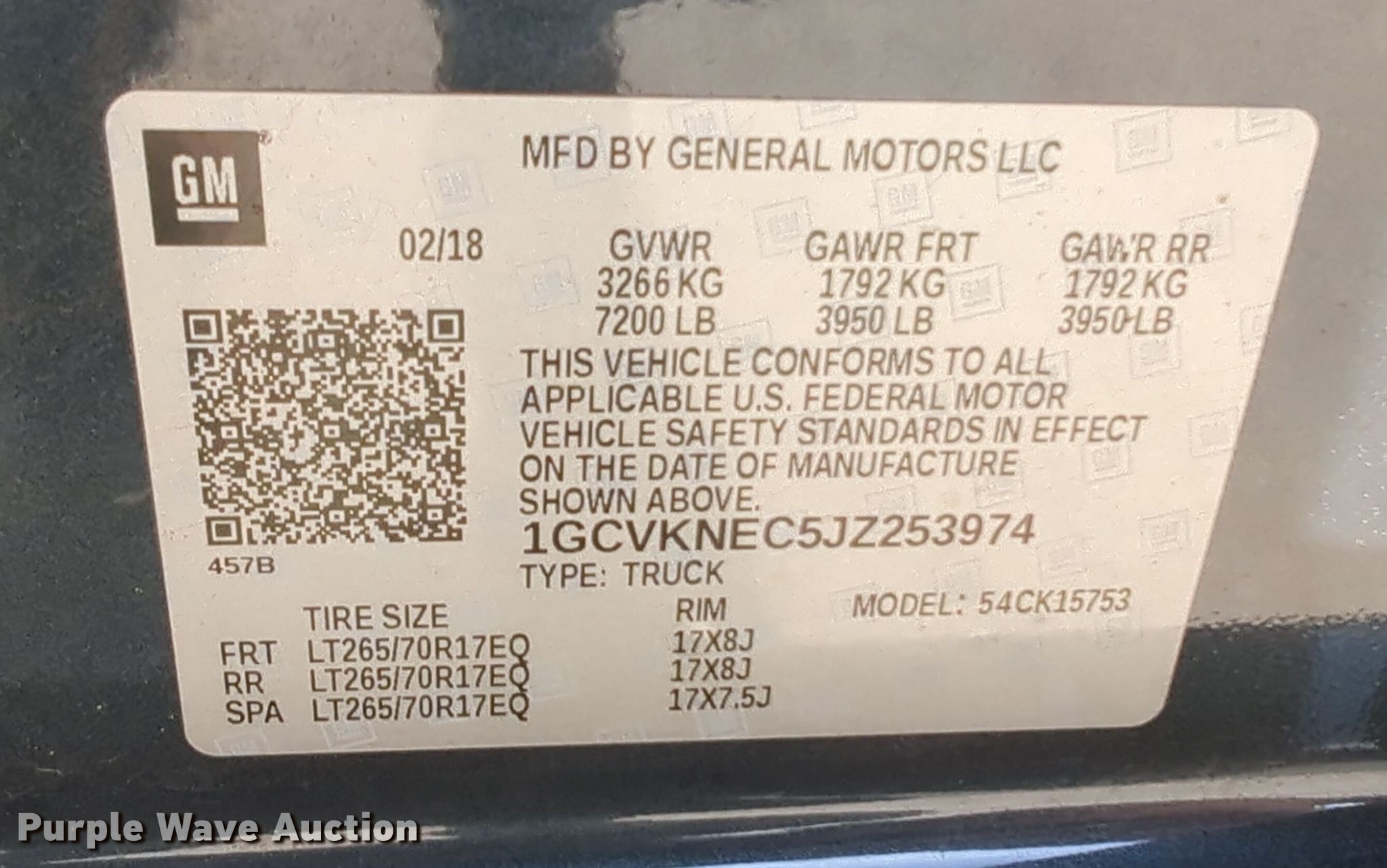 Purple Wave is selling a used 1/2 Ton Pickup or Van in Oklahoma. This item is a 2018 Chevrolet Silverado 1500 Double Cab pickup truck with the following: Miles: 104,472 on odometer, VIN: 1GCVKNEC5JZ253974, Unit #: 253974