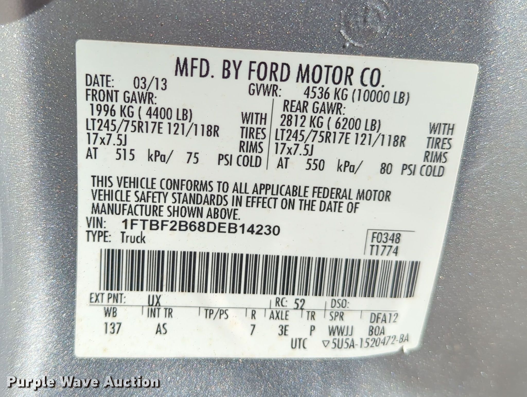 Purple Wave is selling a used 3/4 or 1 Ton Pickup or Van in Oklahoma. This item is a 2013 Ford F250 Super Duty XL pickup truck with the following: Miles: 95,629 on odometer, VIN: 1FTBF2B68DEB14230, Unit #: B14230