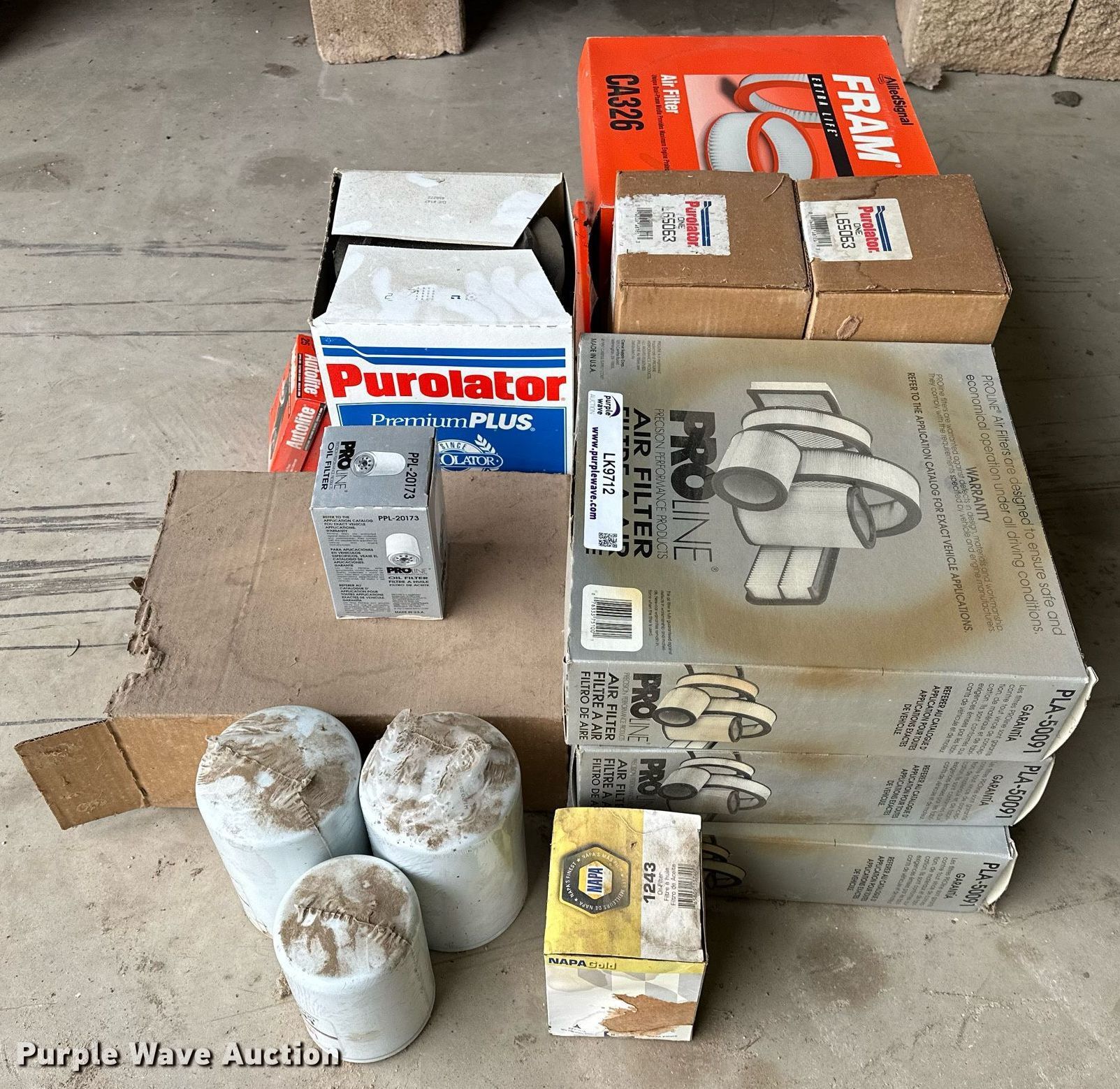 Purple Wave is selling a used Automotive Parts or Acces. in Oklahoma. This item is a Automotive parts with the following: Air filters, (3) Fram CA326, (3) ProLine PLA-50091, Oil filters, (9) ProLine PPL-20173, (2) Purolator ONE L65063, (2) Luber-finer LFF3349 fuel filters, (8) Autolite spark plugs, Luber-finer LFW-4744 coolant filter