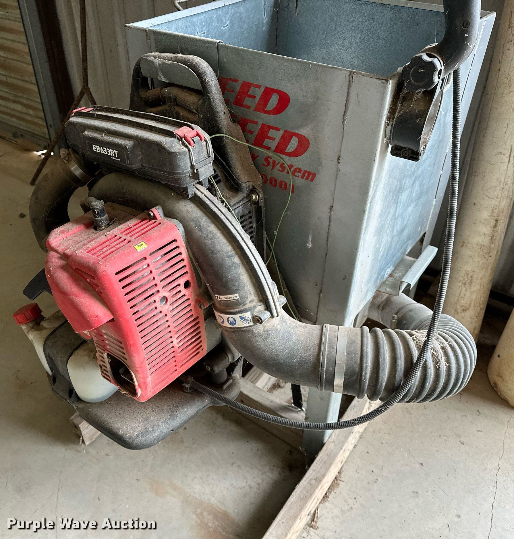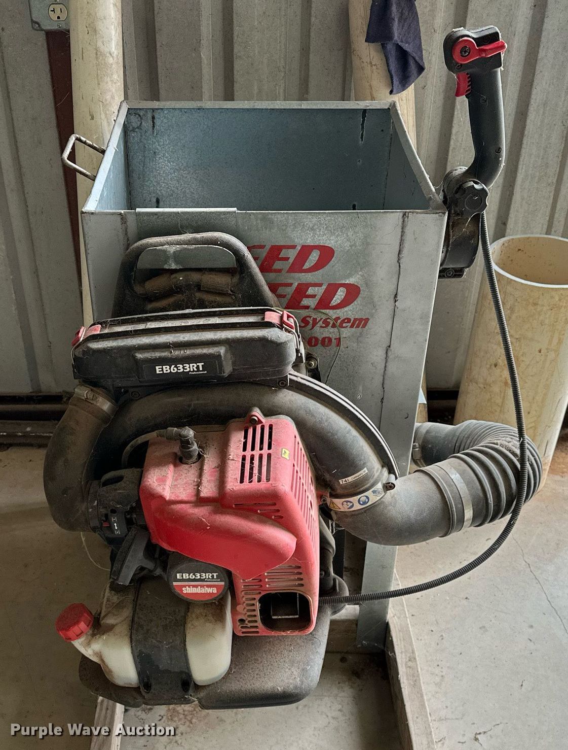 Purple Wave is selling a used Tools in Oklahoma. This item is a Speed Feed feed delivery system with the following: Dimensions: 18" x 18" x 17", Shindaiwa EB633RT blower, Cylinders: Single, Fuel type: Gas