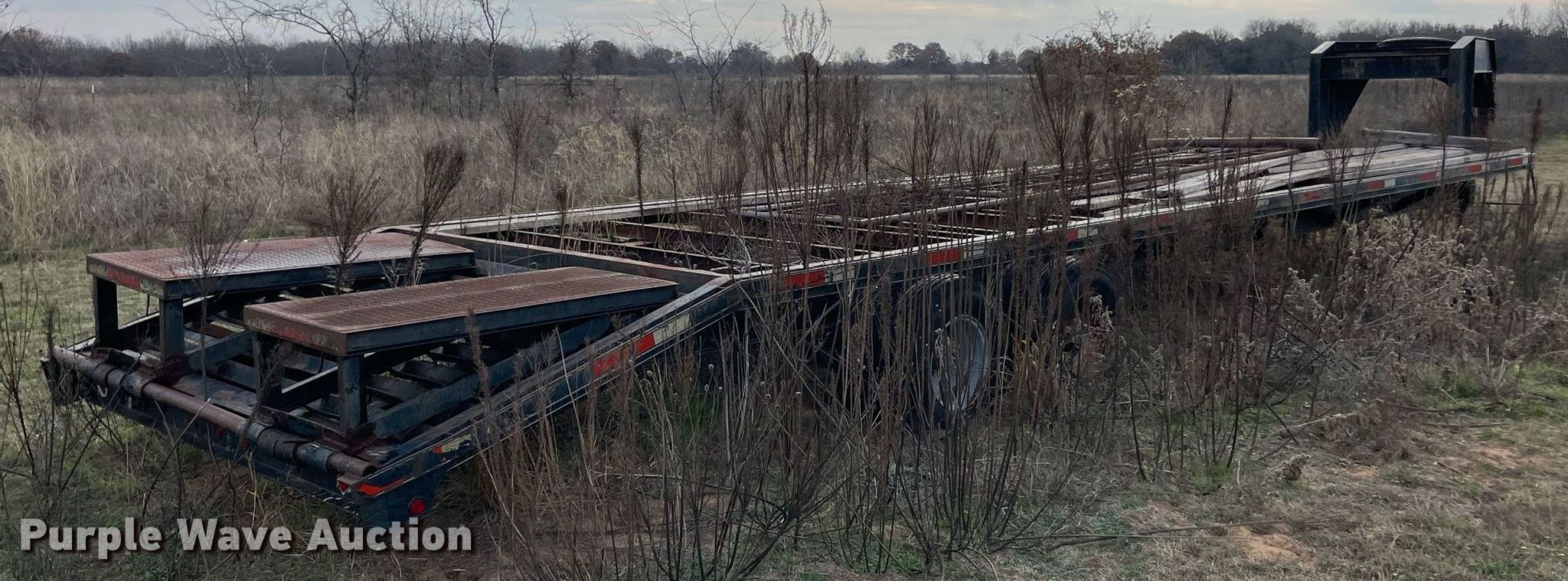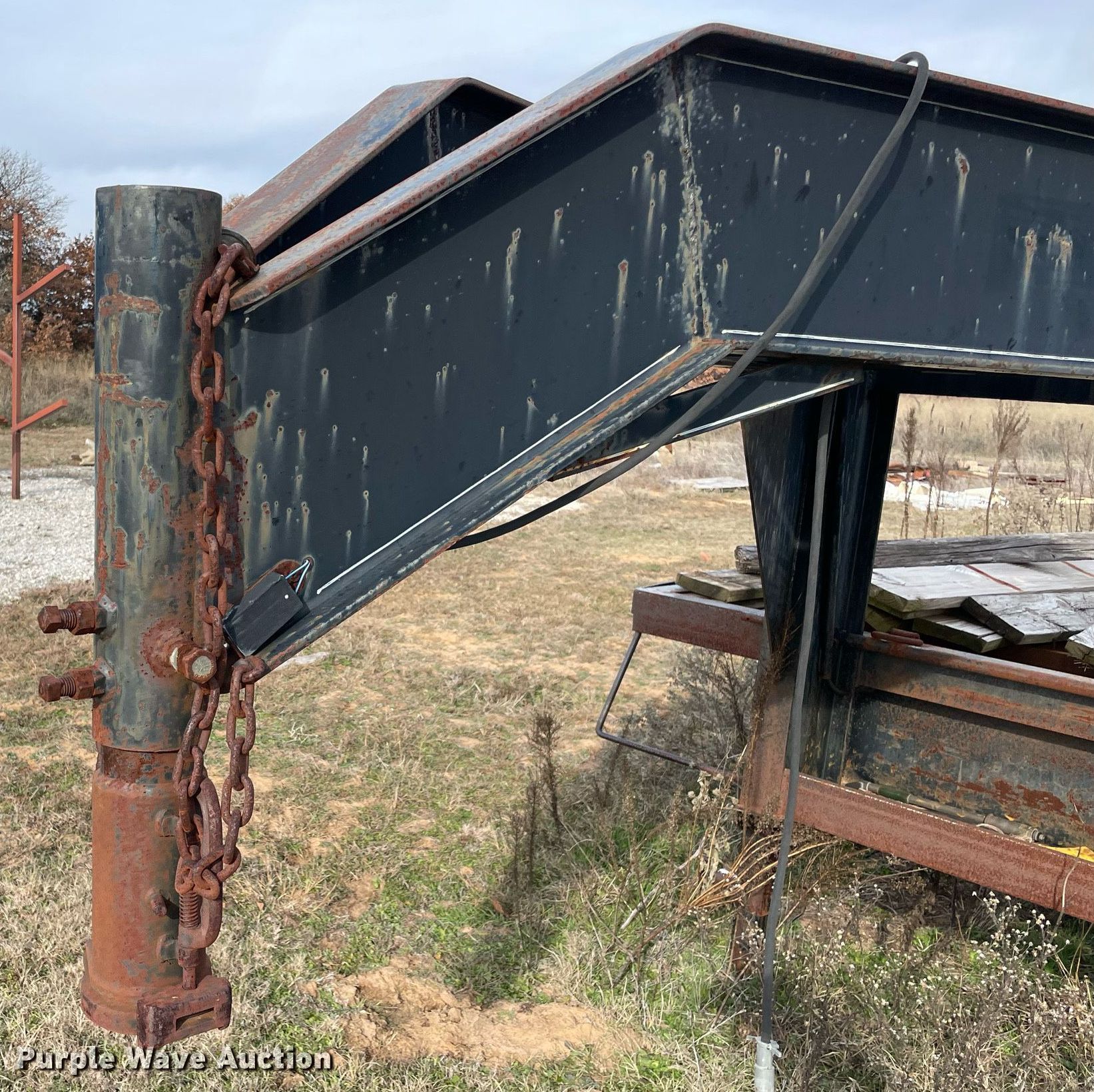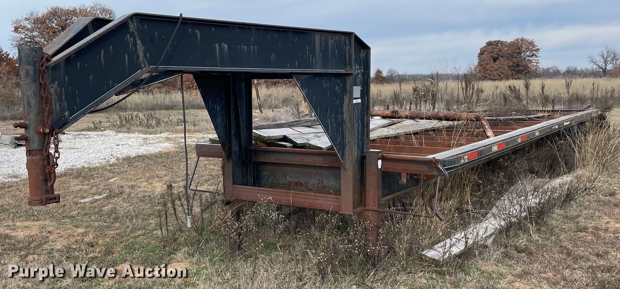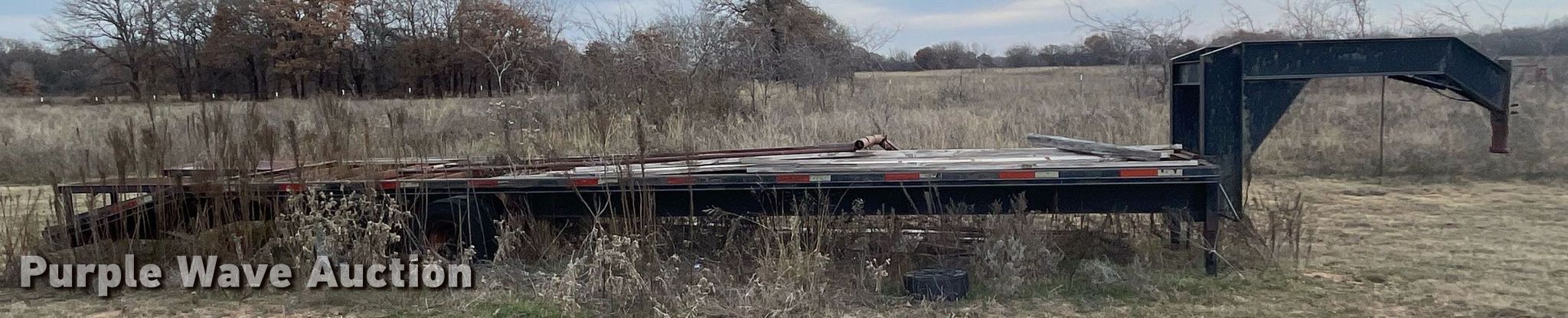1999 Rocking Chair equipment trailer. VIN: 1R9GD3520X3286266. Dimensions Overall: 44' L x 102" W, Deck: 30' L x 102" W, Tail length: 5', Ramps: Manual Length: 4' 8". Chassis Hitch: Gooseneck, Landing gear: Dual, Suspension: Spring, Axles: Tandem, GVWR: 20,000 lbs, GAWR: 10,000 lbs. Tires Size: 7.50R16. Notes Deck boards missing, Non-operational lights, Contents included , Tire issues, need replaced. Transfer of ownership documentation will be a bill of sale. Oklahoma Department of Wildlife Conservation. 23947 State Highway 32. Burneyville, OK 73430