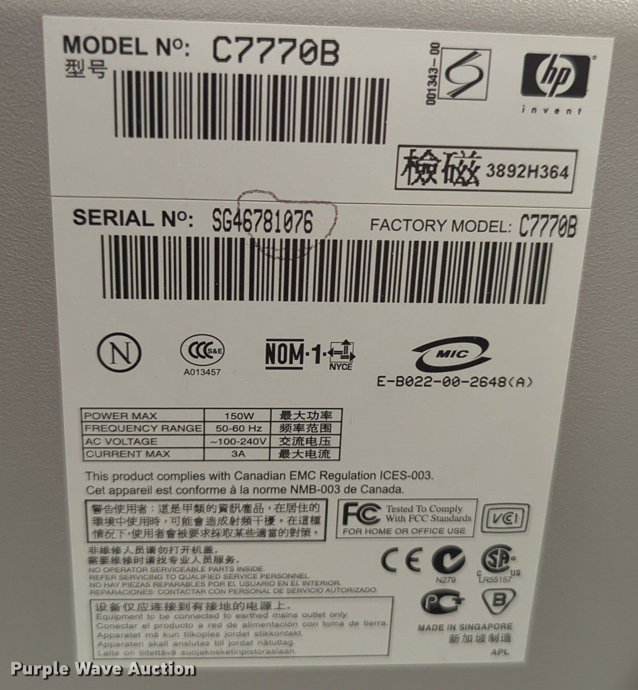 Purple Wave is selling a used Copy or Printing Machine in Oklahoma. This item is a HP Design Jet 500 map printer with the following: HP Design Jet 500 map printer. Oklahoma Department of Wildlife Conservation - Open Inspection January 29. 1801 North Lincoln Boulevard. Oklahoma City, OK 73105