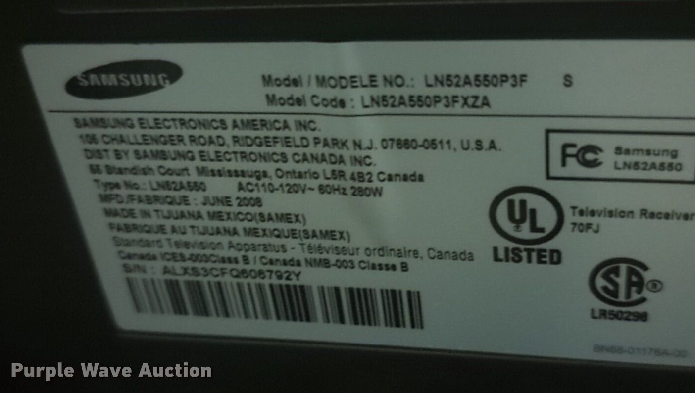 Purple Wave is selling a used Electronics in Oklahoma. This item is a Samsung 52" TV with the following: Remote, Possible display issues, only displays blue screen