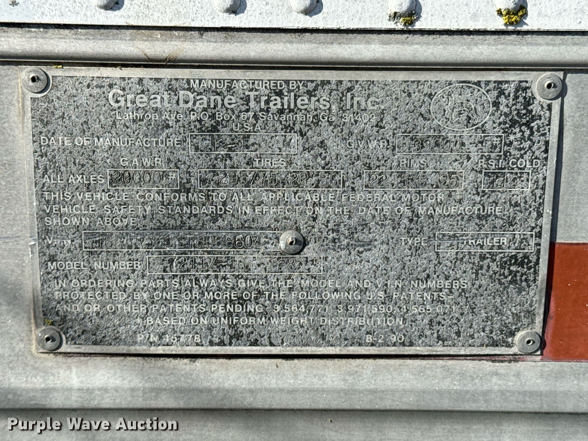 Purple Wave is selling a used Dry Van Trailer in Oklahoma. This item is a 1996 Great Dane 7211Z-1B 28 dry van trailer with the following: VIN: 1GRAA5611T8066604