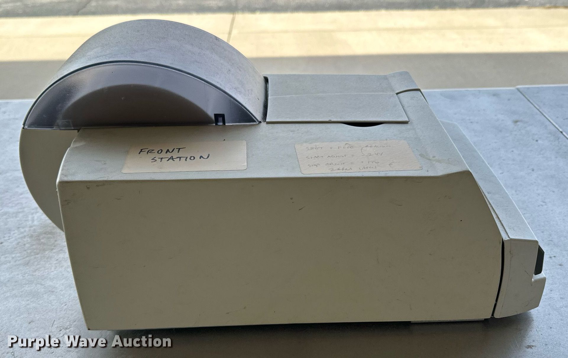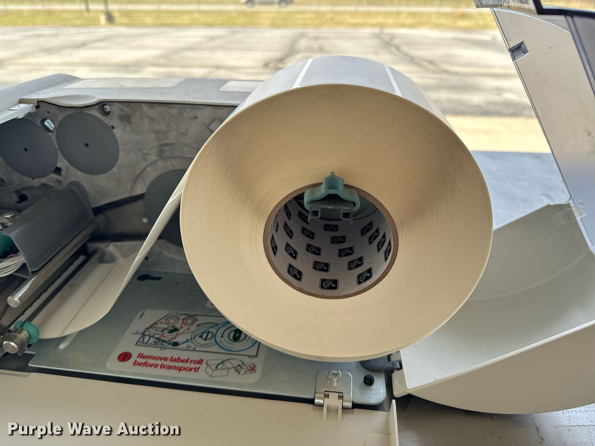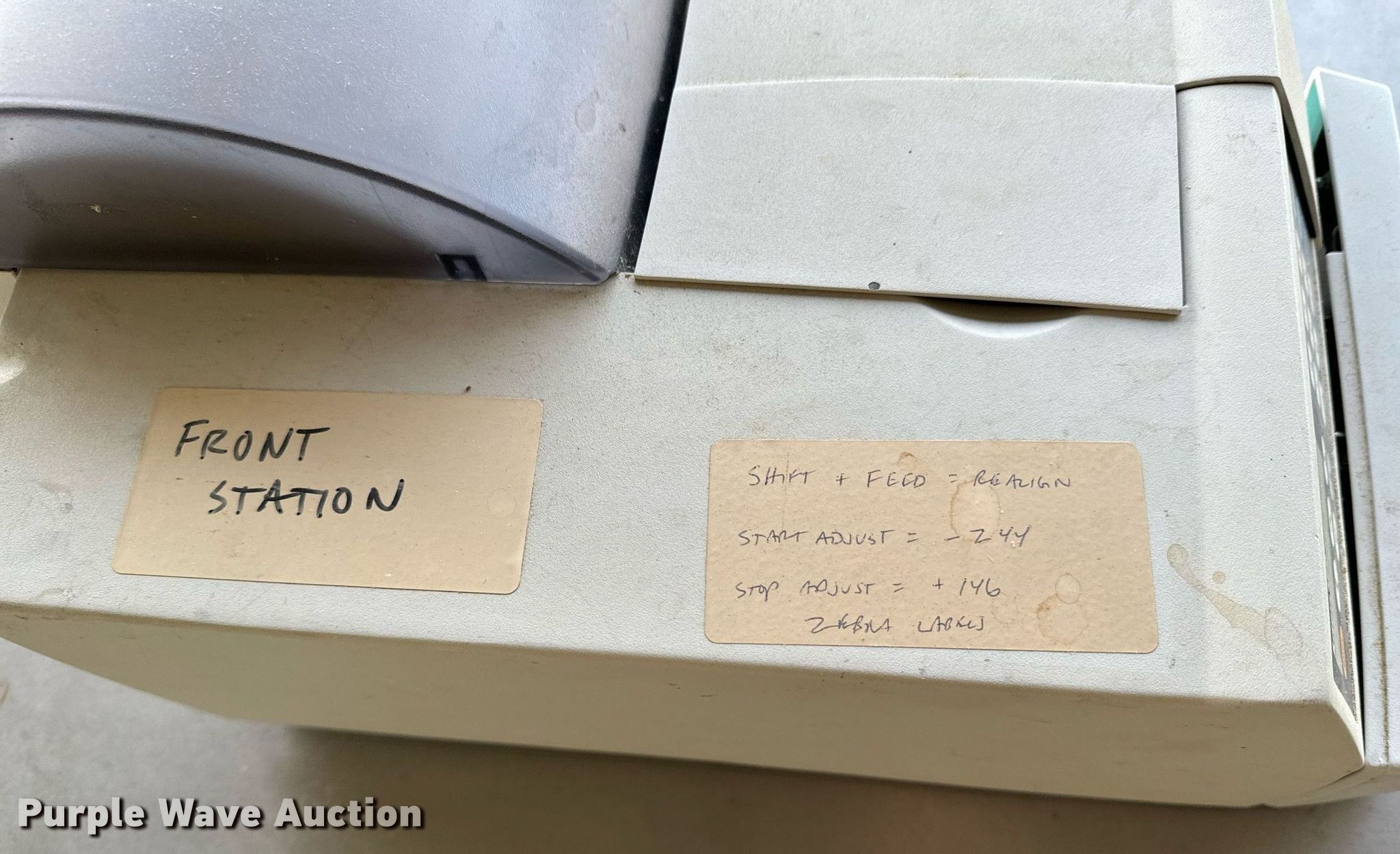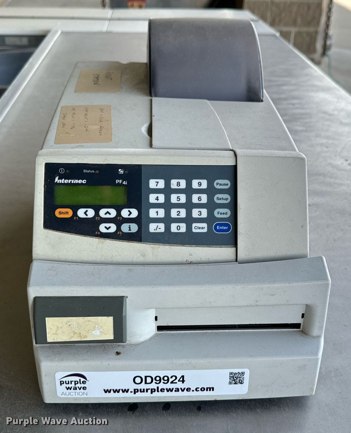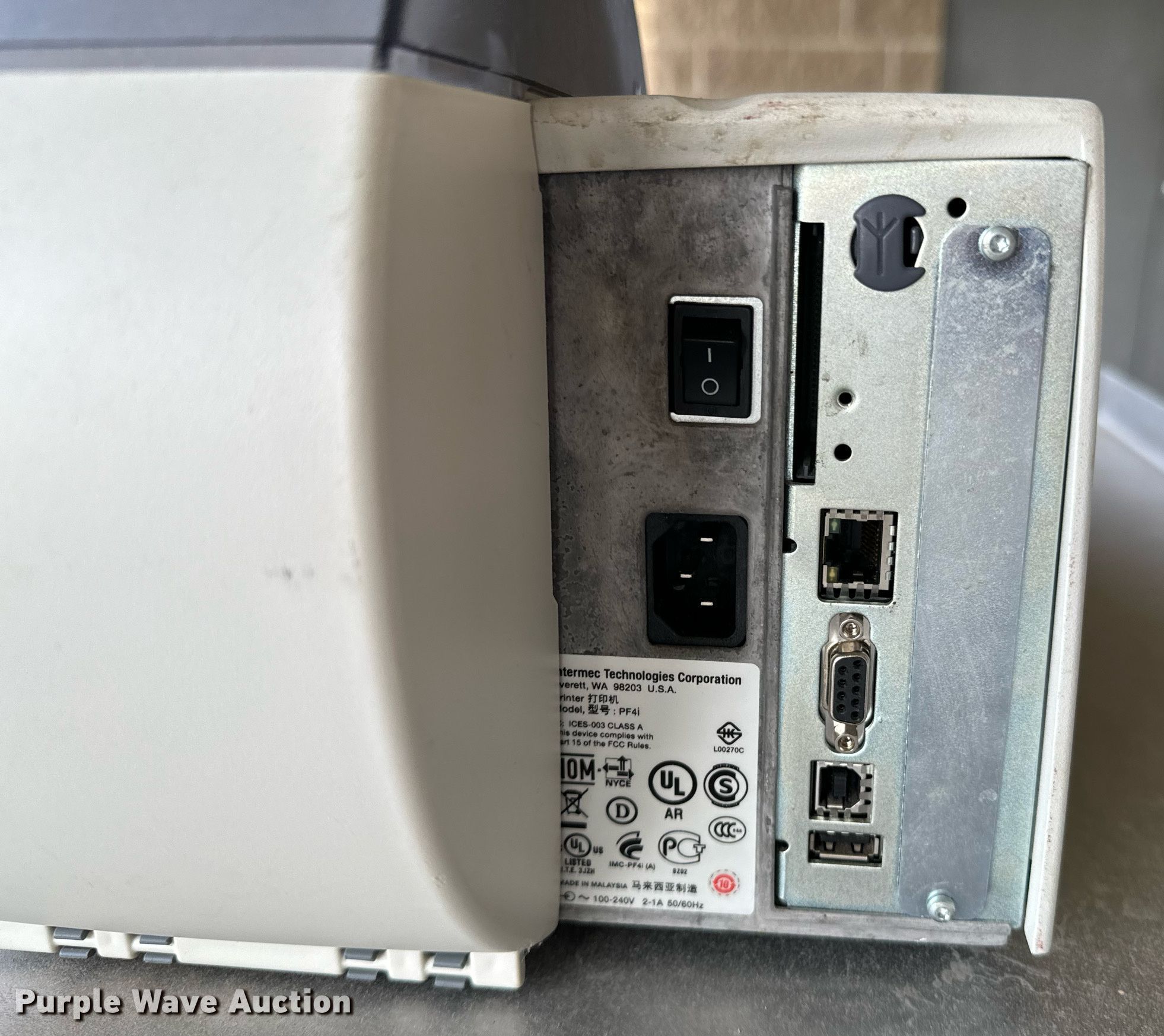 Purple Wave is selling a used Office Supplies and Equip. in Oklahoma. This item is a Intermec label printer with the following: Label cutter, Power cable, Unknown operating condition