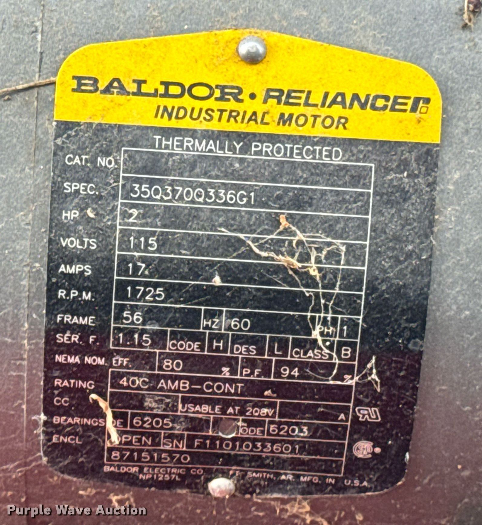 Hotsy HC165L1 pressure washer. Serial: 003441. Electric Motor Baldor Industrial, HP: 2, Volts: 115, Phase: Single. Features PSI: 1300 , GPM: 2.2 , Maximum temperature: 225 , RPM: 1725. Notes Unknown operating condition. Oklahoma Department of Wildlife Conservation. 61091 East 120 Road. Miami, OK 74354