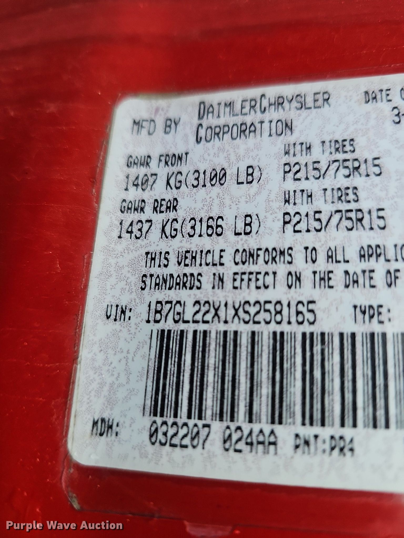 - VIN: 1B7GL22X1XS258165
