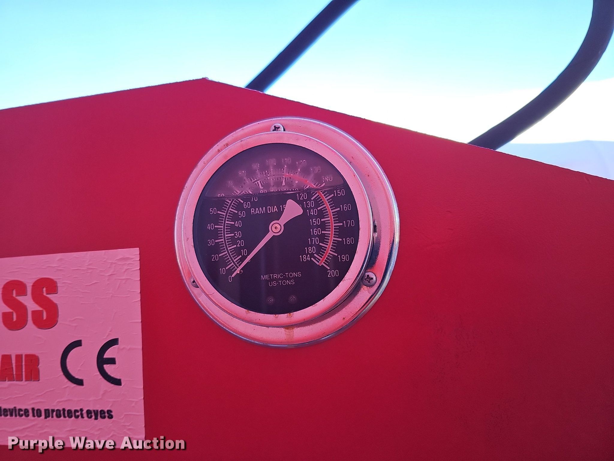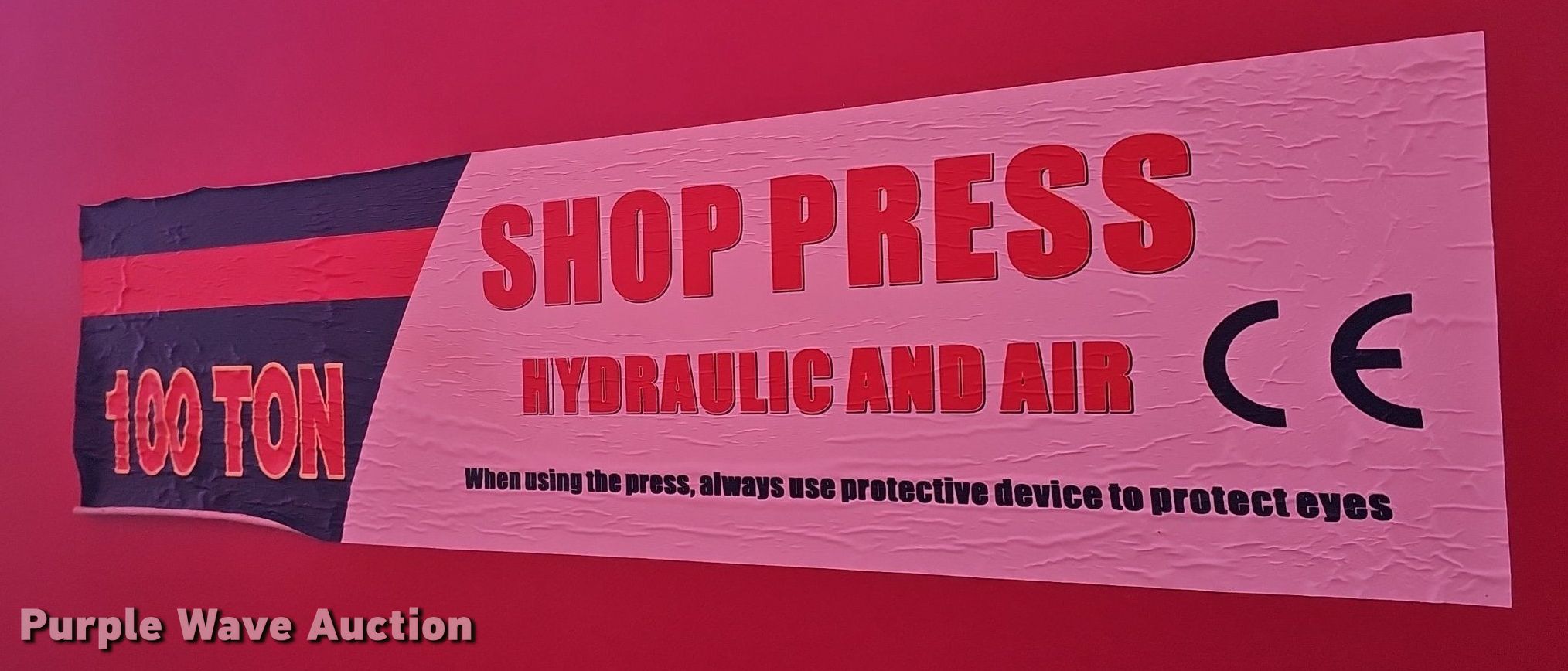 100 ton shop press. 43 1/2" L x 39 1/2" W x 76" H, Hydraulic and pneumatic operation, Unused. Jordan Machinery / S & N Auto Sales. 25050 U.S. 275. Waterloo, NE 68069