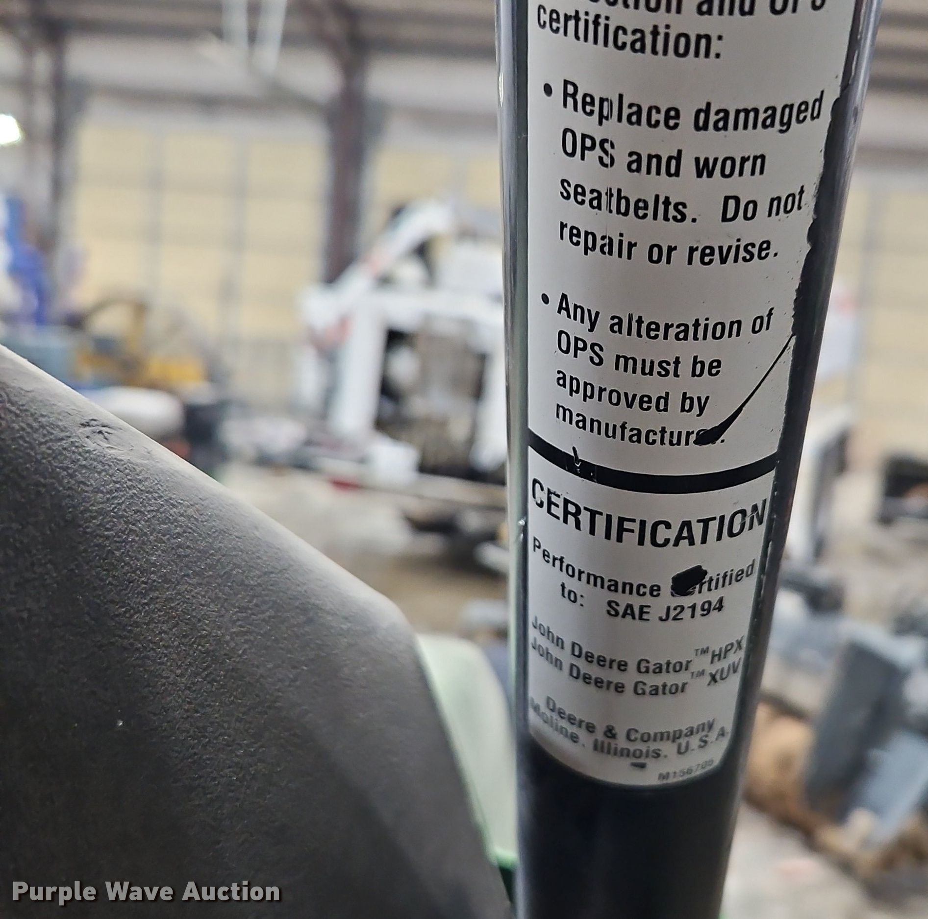 2013 John Deere Gator utility bed pickup truck. Hours: 1,799 on meter, VIN: 1M0550TBEDM023440. Engine Cylinders: 2, Fuel type: Gas, Electric start. Transmission Automatic. Chassis Four wheel drive. Operators station OROPS. Features Receiver hitch, Dump bed 31" L x 47" W, Dump bed type: Manual. Tires Front: 25x8.00-12, Rear: 10.00-12. Transfer of ownership documentation will be a bill of sale. Kiwi Landscaping. 20207 Holmes Rd. Belton, MO 64012